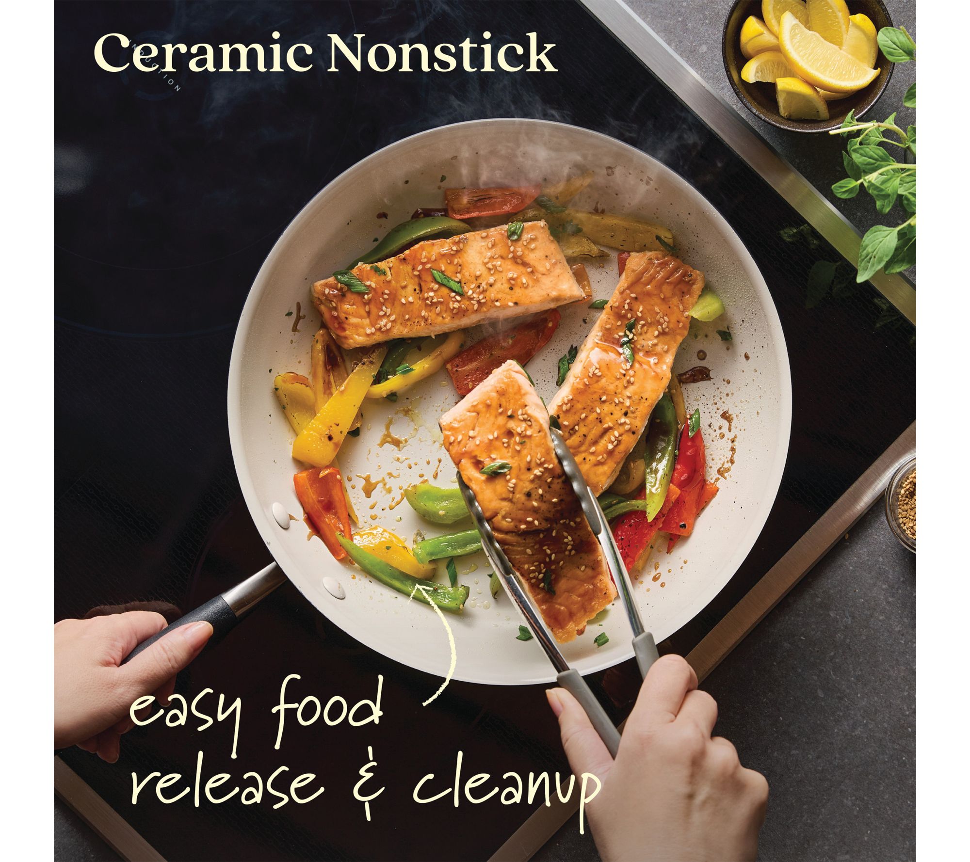 • Ceramic nonstick surface promotes easy food release