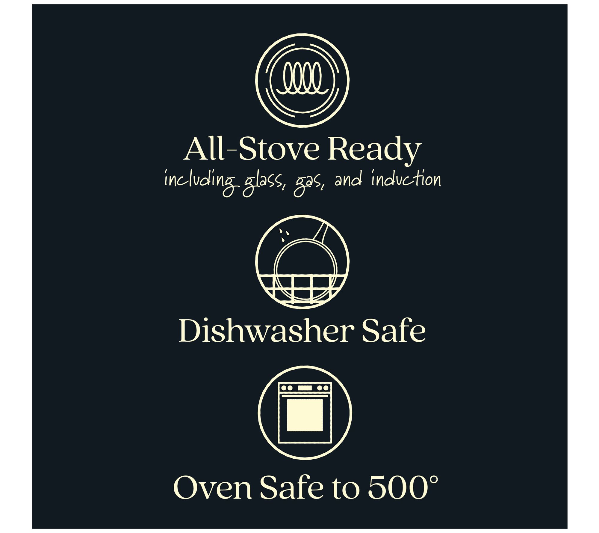 • Dishwasher-safe; oven-safe to 500F