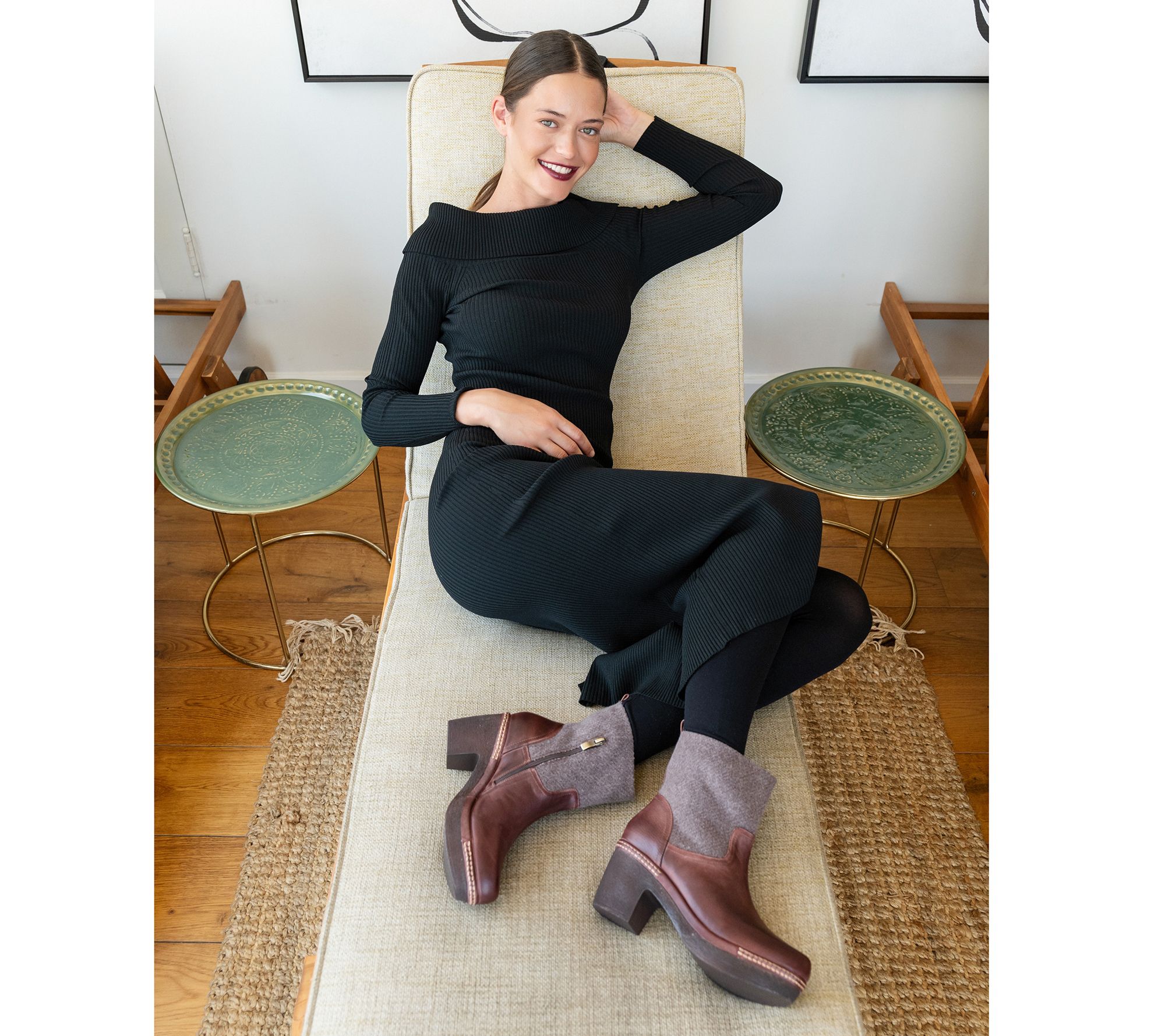 A combination of brushed leather and soft felt gives these ankle boots a comfy and cozy vibe. From Antelope.