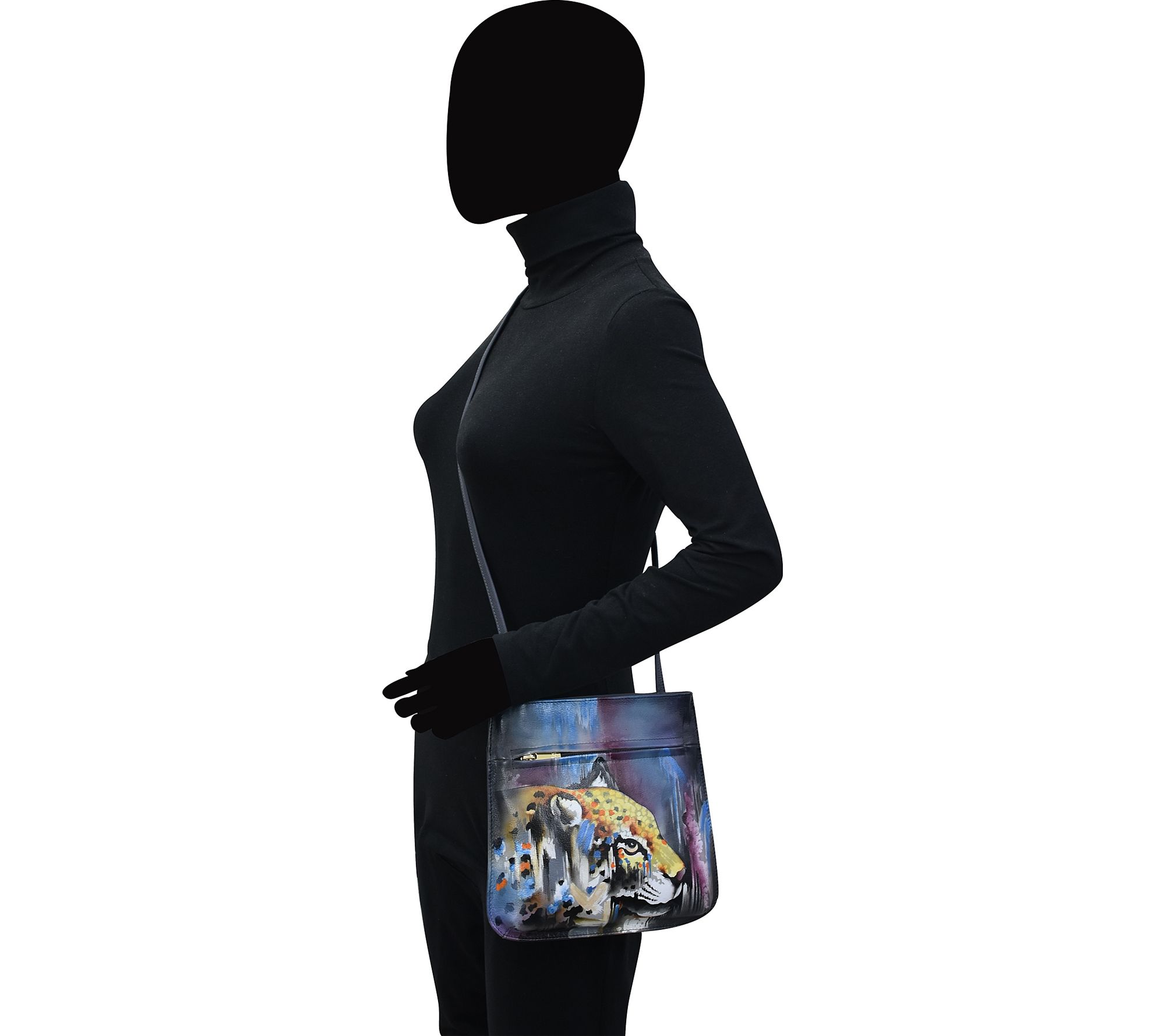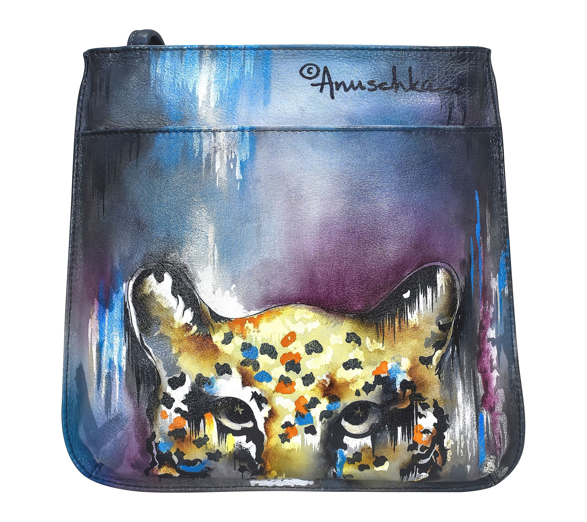 With vibrant, painted artwork accenting the genuine leather exterior, this slim crossbody brings an expressive touch to everyday outings. Its sling strap keeps your hands free while thoughtful pockets organize your cell phone, keys, and essentials on trips to the market or walks in the park. From Anuschka.