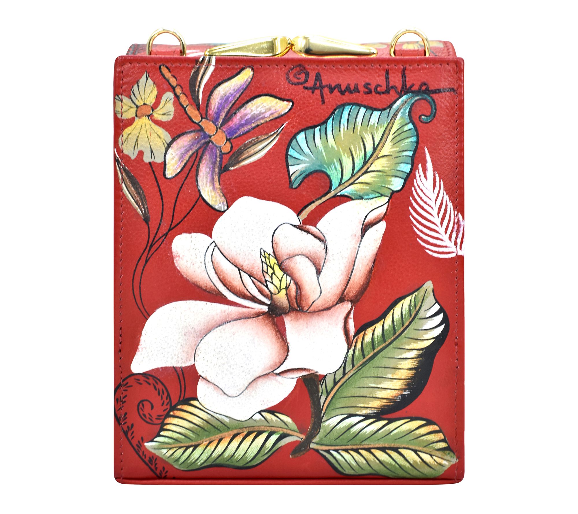 Artfully painted leather transforms everyday outings into special occasions with this cleverly organized crossbody. Three separate compartments and eight card pockets keep essentials at your fingertips -- perfect for brunch with friends or a weekend exploring new places. A detachable strap and rear coin pocket give you flexible options for style and convenience. From Anuschka.