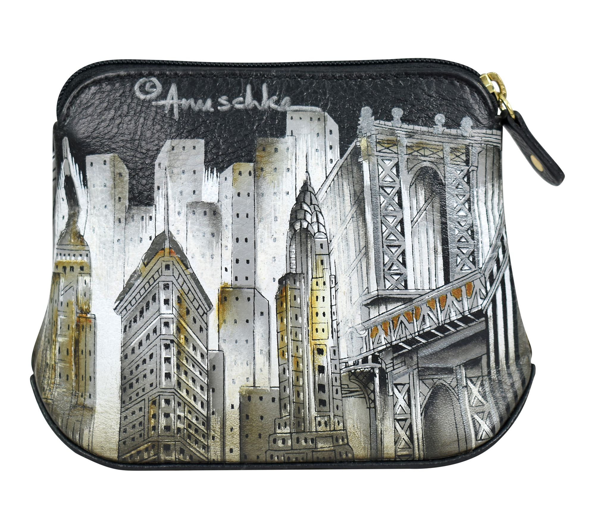 Anushcka Painte d Leather Multi -Purpose Zip Po uch