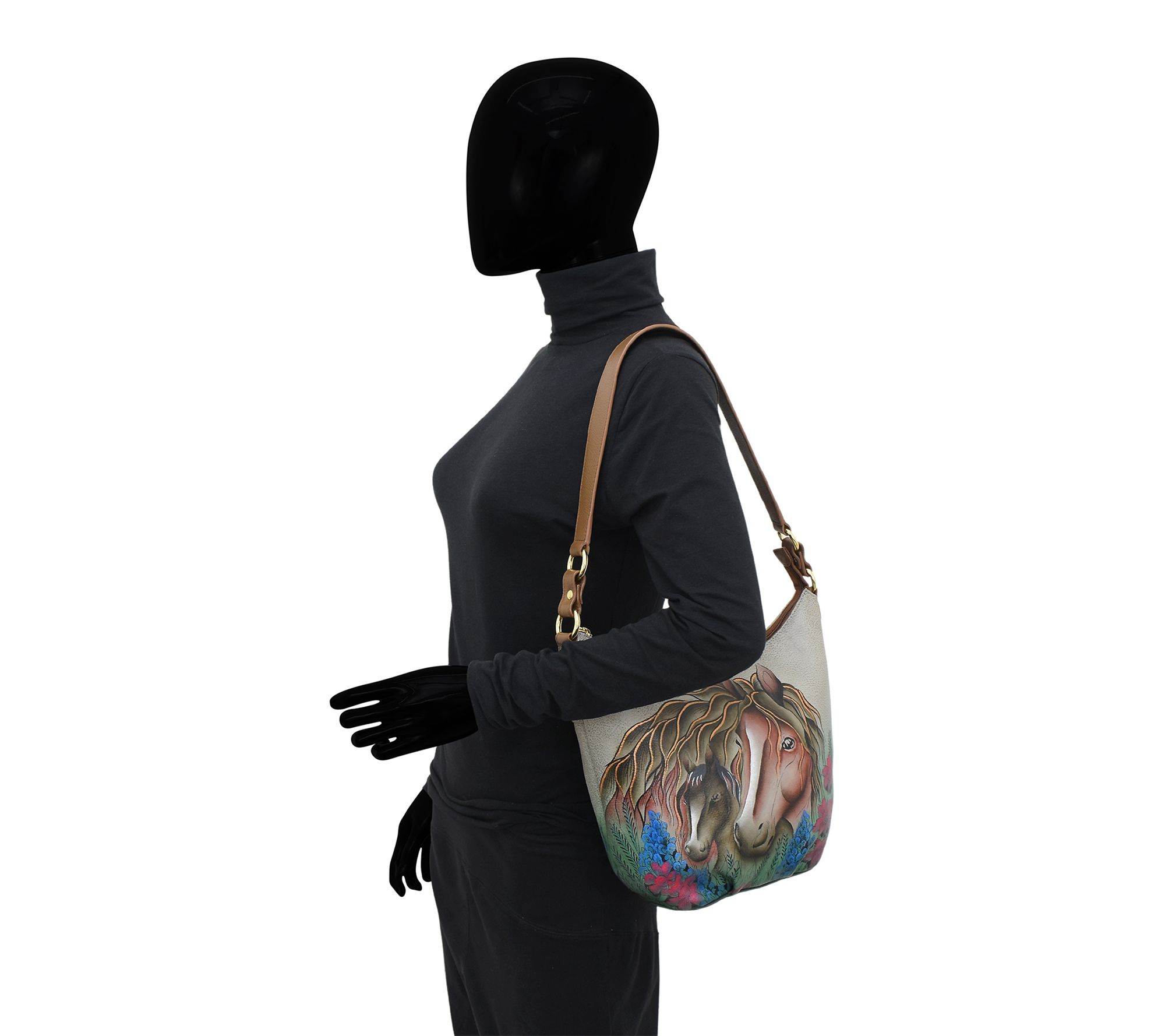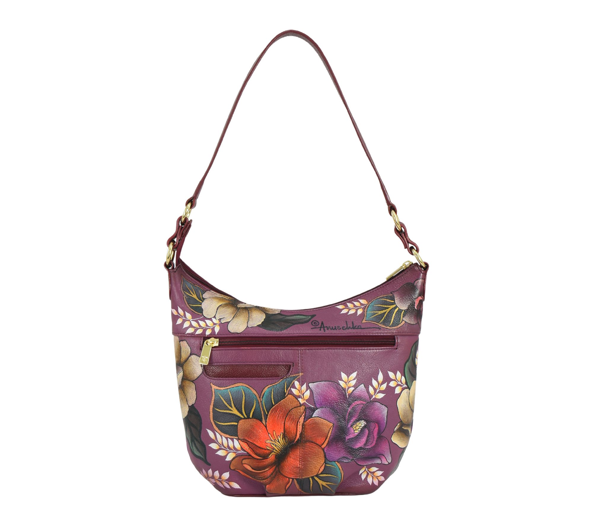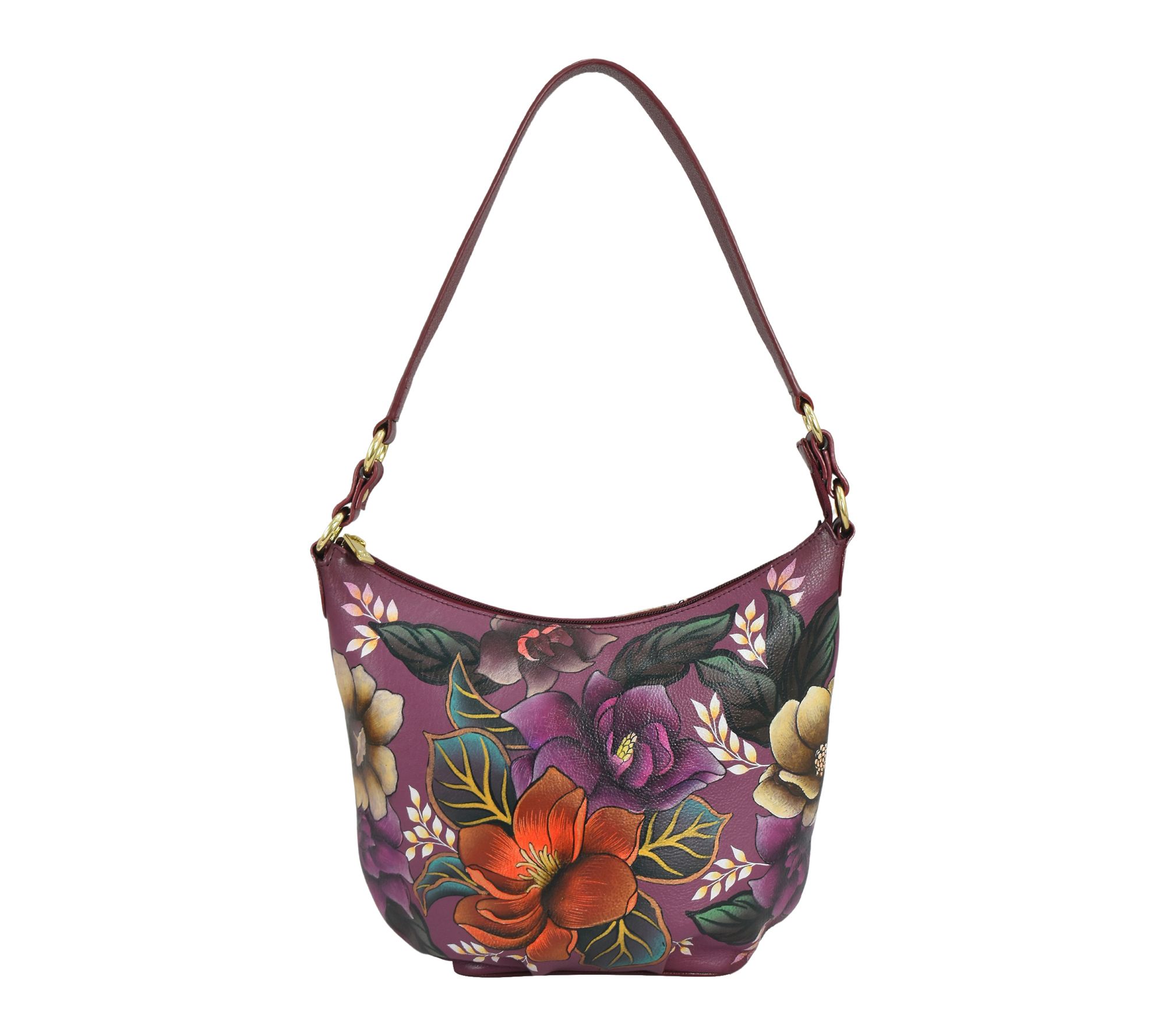 With striking painted leather and a spacious silhouette, this large shoulder hobo brings flair and function to your everyday routine. Roomy enough for essentials, the style adds a pop of artistry whether you're heading to brunch or commuting to work. From Anushcka.