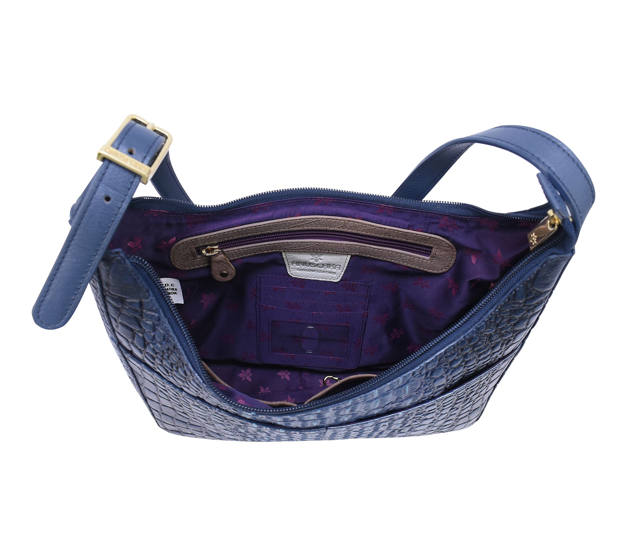 Bring a vibrant touch to your everyday with this painted leather hobo, showcasing original artwork that stands out in any crowd. The spacious interior keeps your essentials organized while the adjustable single handle provides effortless comfort through weekday errands and weekend strolls. From Anuschka.
