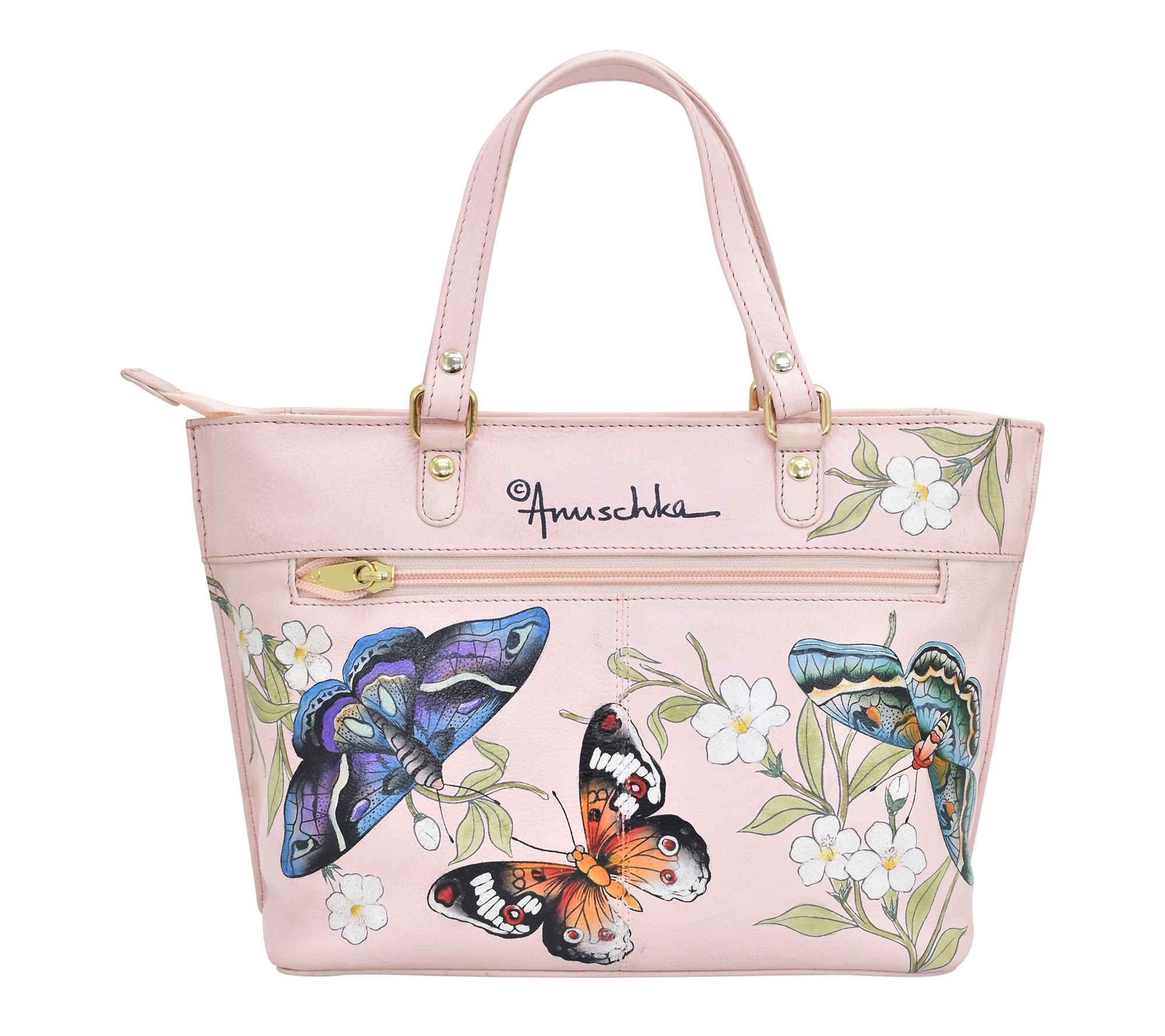 Artfully painted with vibrant motifs, this medium tote brings a cheerful splash of color to your daily routine, whether you're strolling through the farmer's market or heading to work. Spacious enough for notebooks or your favorite book, its leather construction showcases thoughtful design from every angle. From Anuschka.