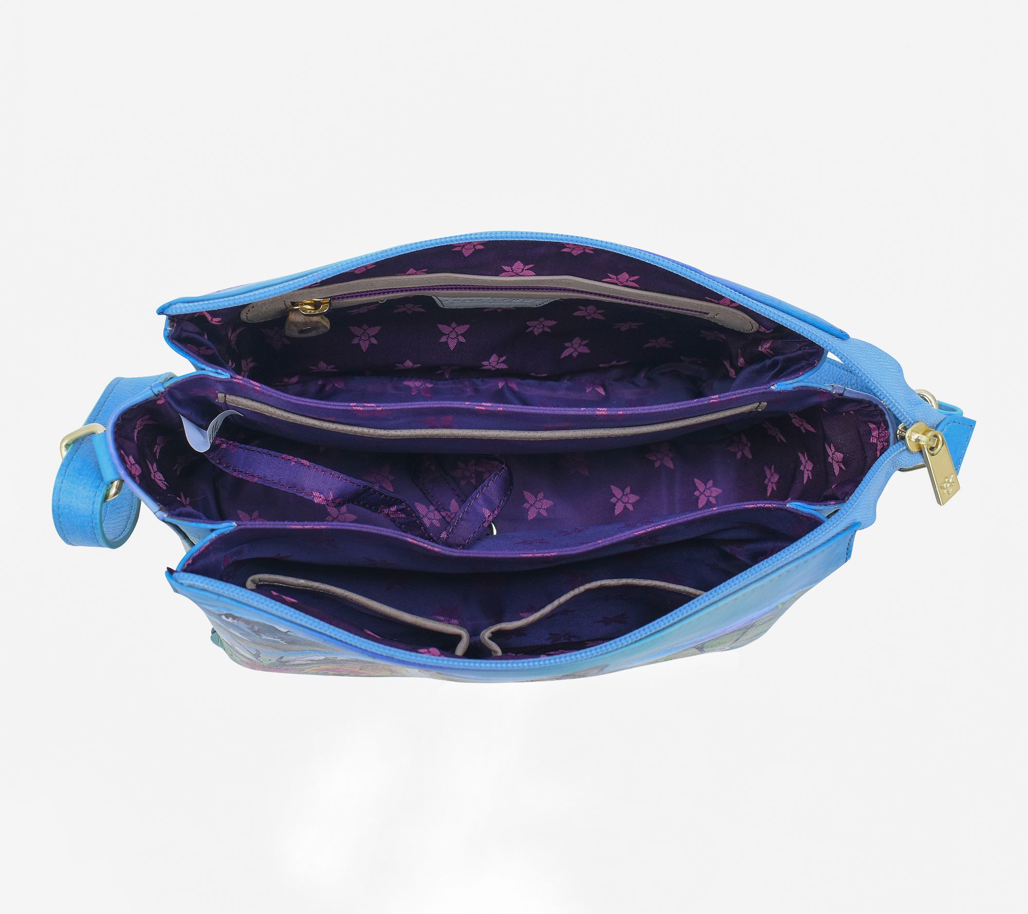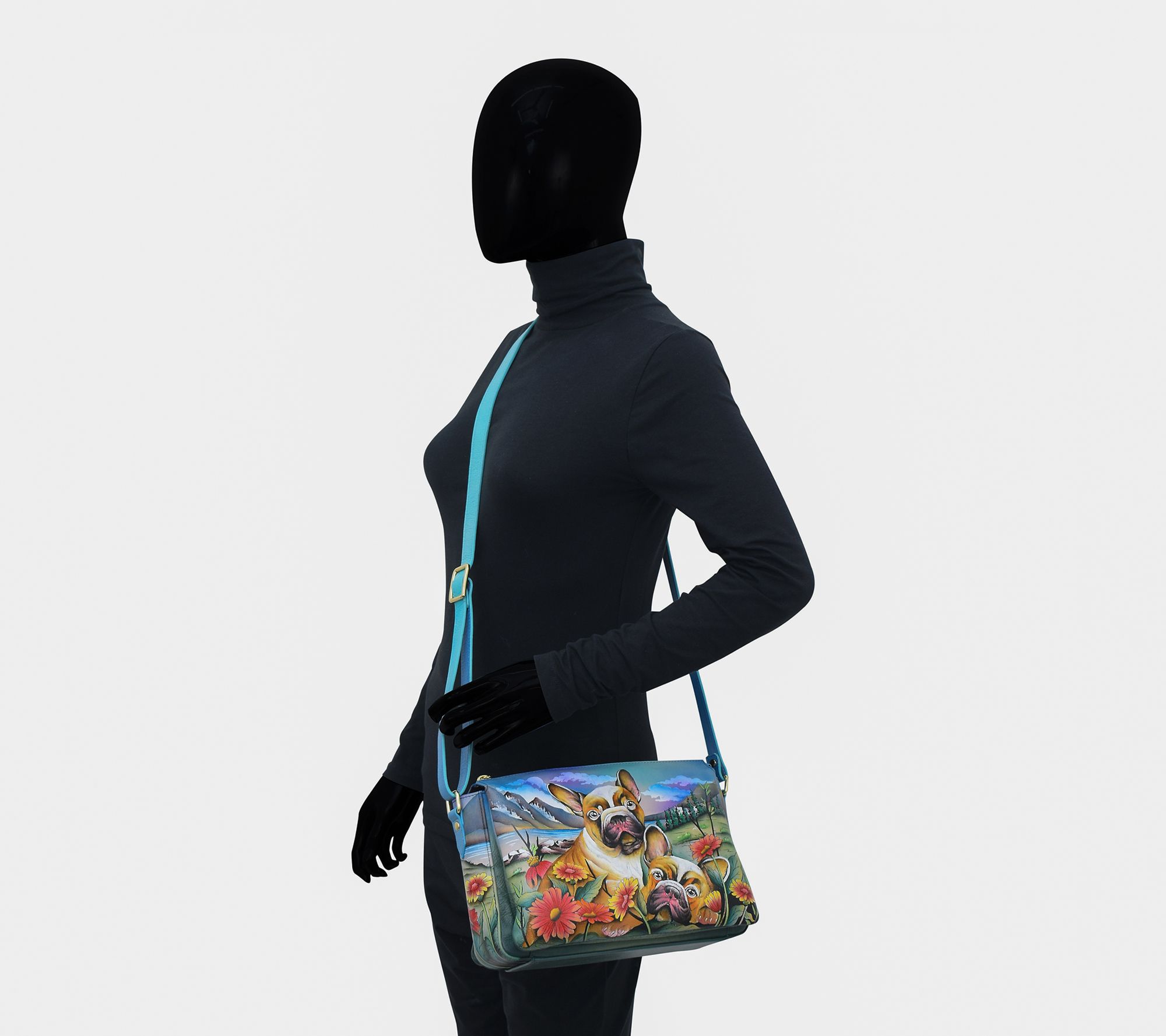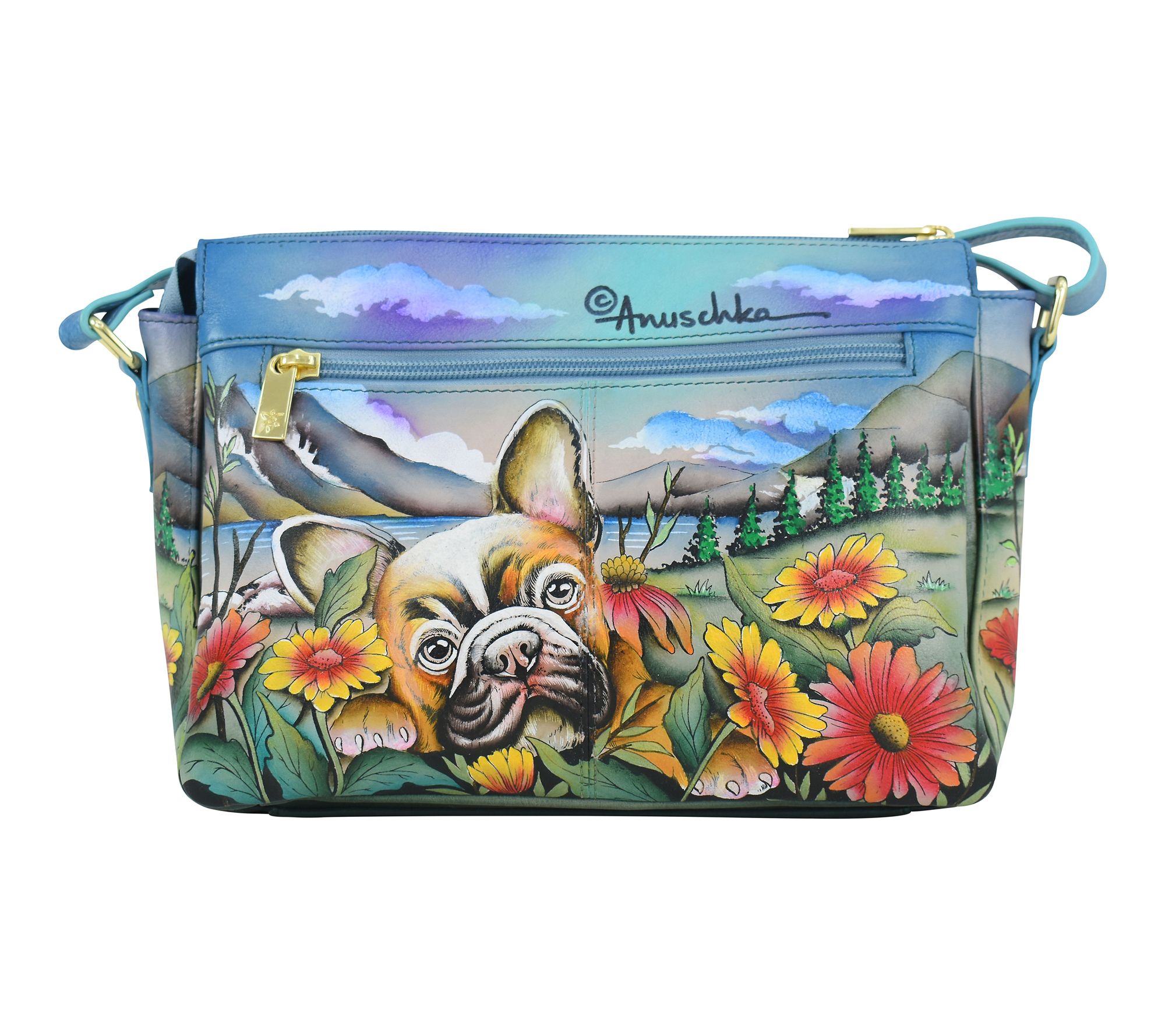 Vibrant hues and striking artwork turn this organizer crossbody into a conversation starter wherever you go. With organized pockets and a sleek profile, this crossbody easily stores essentials whether you're heading out for coffee or spending an afternoon exploring your favorite shops. From Anuschka.