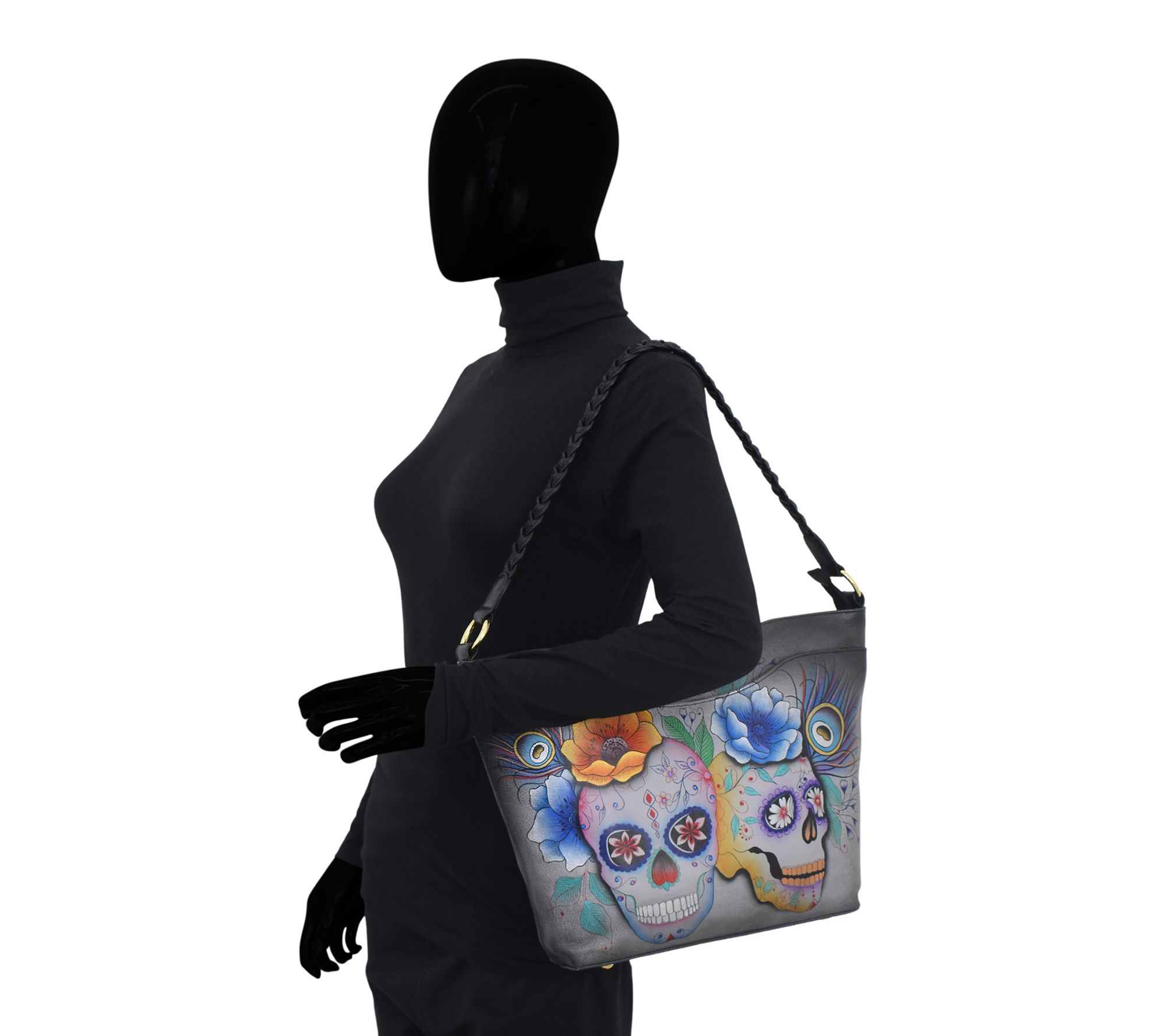 Artfully painted leather brings color and personality to every outing, from weekday errands to weekend adventures. This shopper bag keeps essentials organized in spacious compartments while adding a touch of whimsy to your look with genuine leather and thoughtfully placed pockets. From Anuschka.