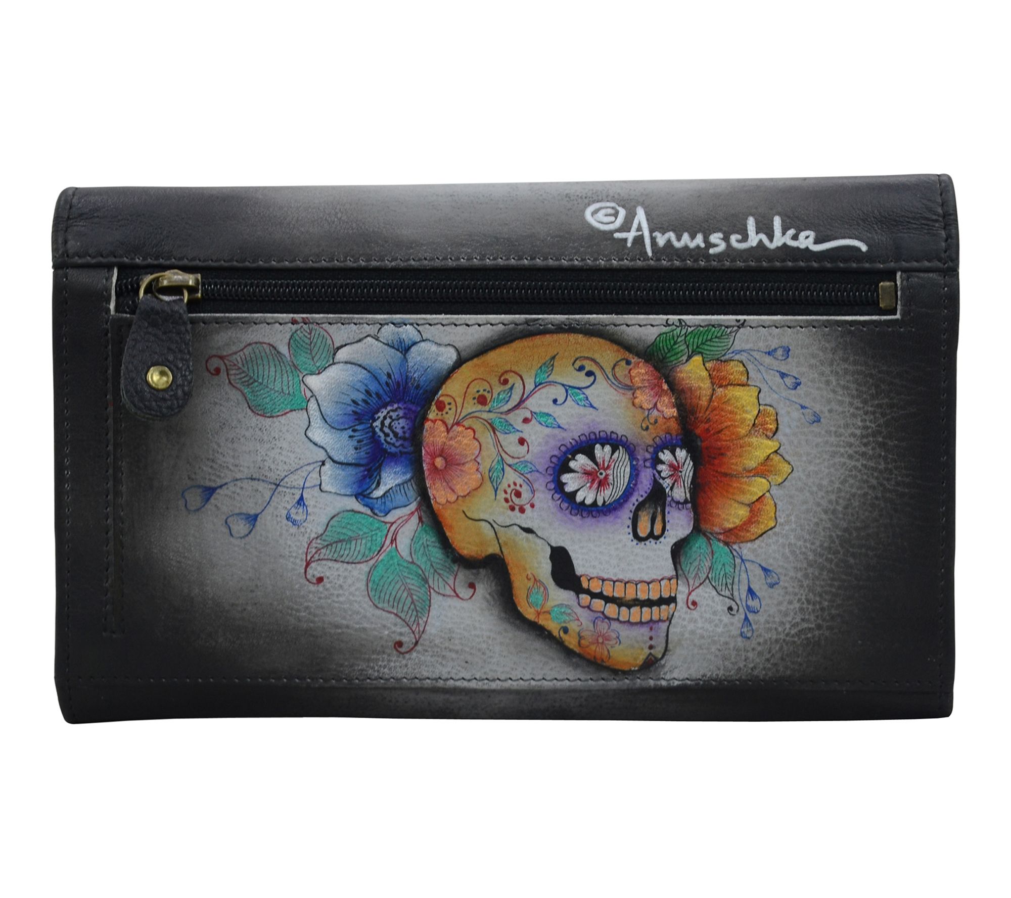 Add a touch of artistic flair to brunch or a night out with this painted leather clutch. The three-fold design keeps essentials organized, while eye-catching colors make every outfit feel a little brighter. From Anuschka.