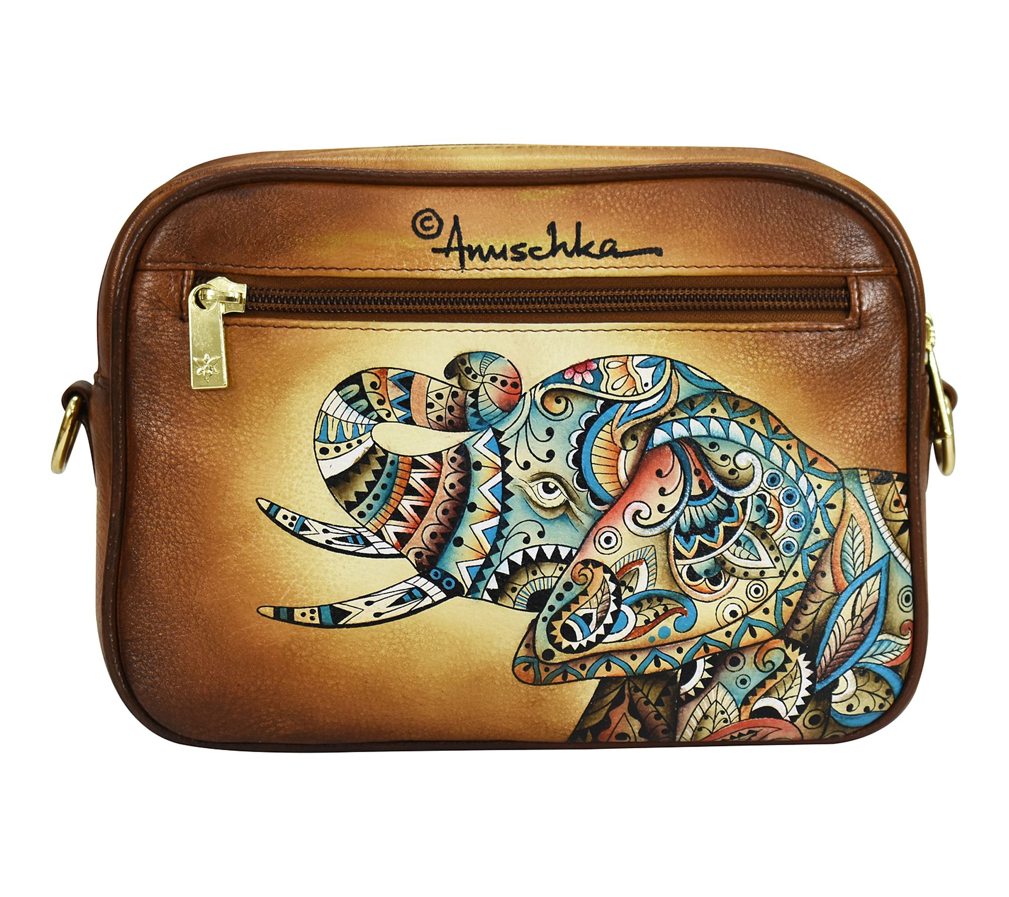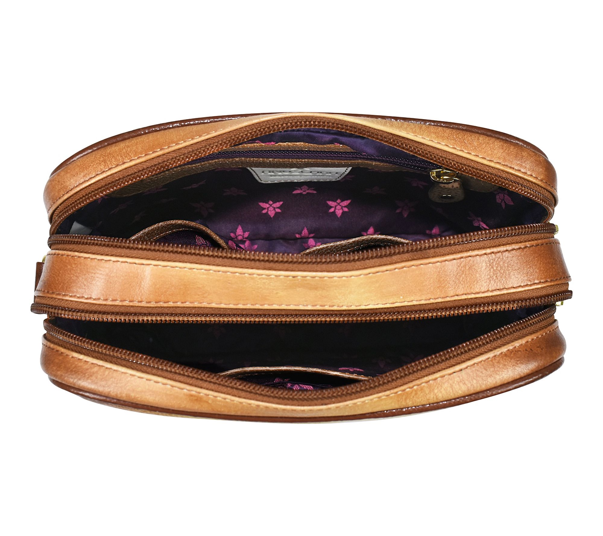 Let your everyday look stand out with this stylish messenger. Bold painted leather brings a vibrant touch to daily commutes or weekend adventures, while its twin top handles add versatility to your carrying options. From Anuschka.