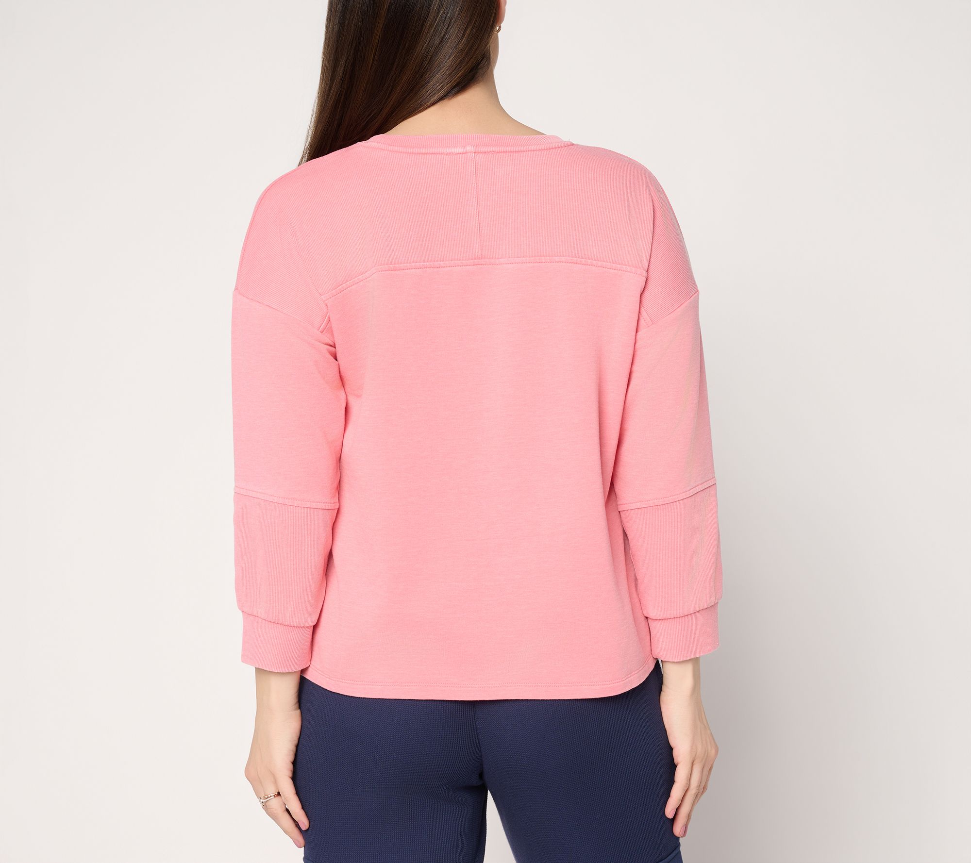 Laidback mornings or breezy beach strolls call for this beach-wash French terry pullover sweater, offering a soft, semi-fitted shape that follows your every move. Ribbed cuffs and yoke add texture and keep your look fresh, while just the right amount of stretch lets you embrace both comfort and style. From AnyBody®.