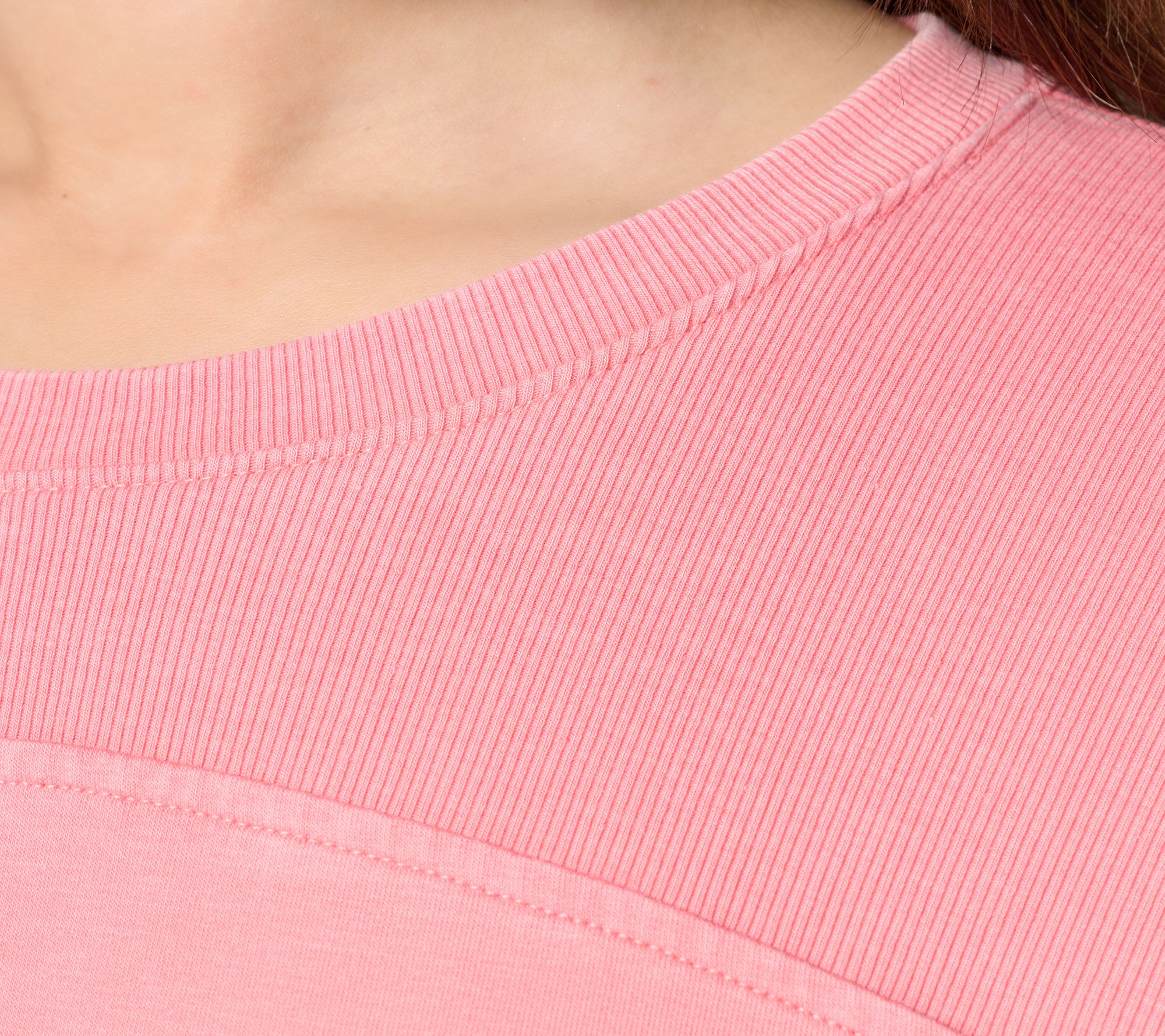 Features: pullover style, ribbed cuffs at sleeves, ribbed yoke to body to maintain shape