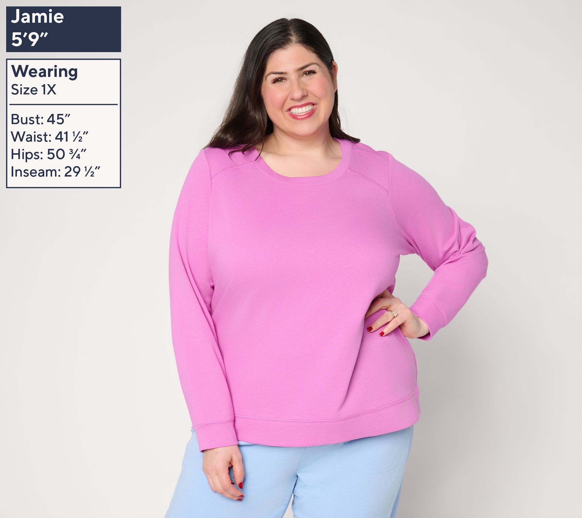 Easy to layer and just as easy to love on its own, this versatile crewneck keeps you comfy year-round thanks to cotton-rich French terry. The superbly soft fabric is warm enough for winter, yet lightweight enough for brisk spring mornings and cool summer evenings. The relaxed silhouette gives you room to move about your busy day and plenty of cuddly contentment during downtime. And for those of us who want a little more coverage, the hi-low hem has it handled.