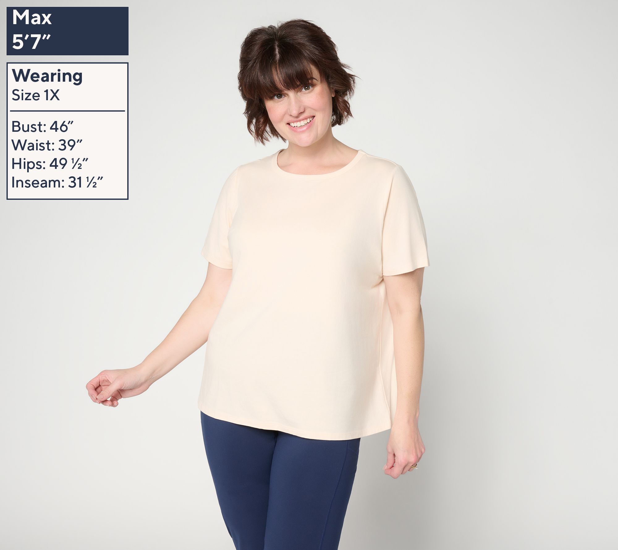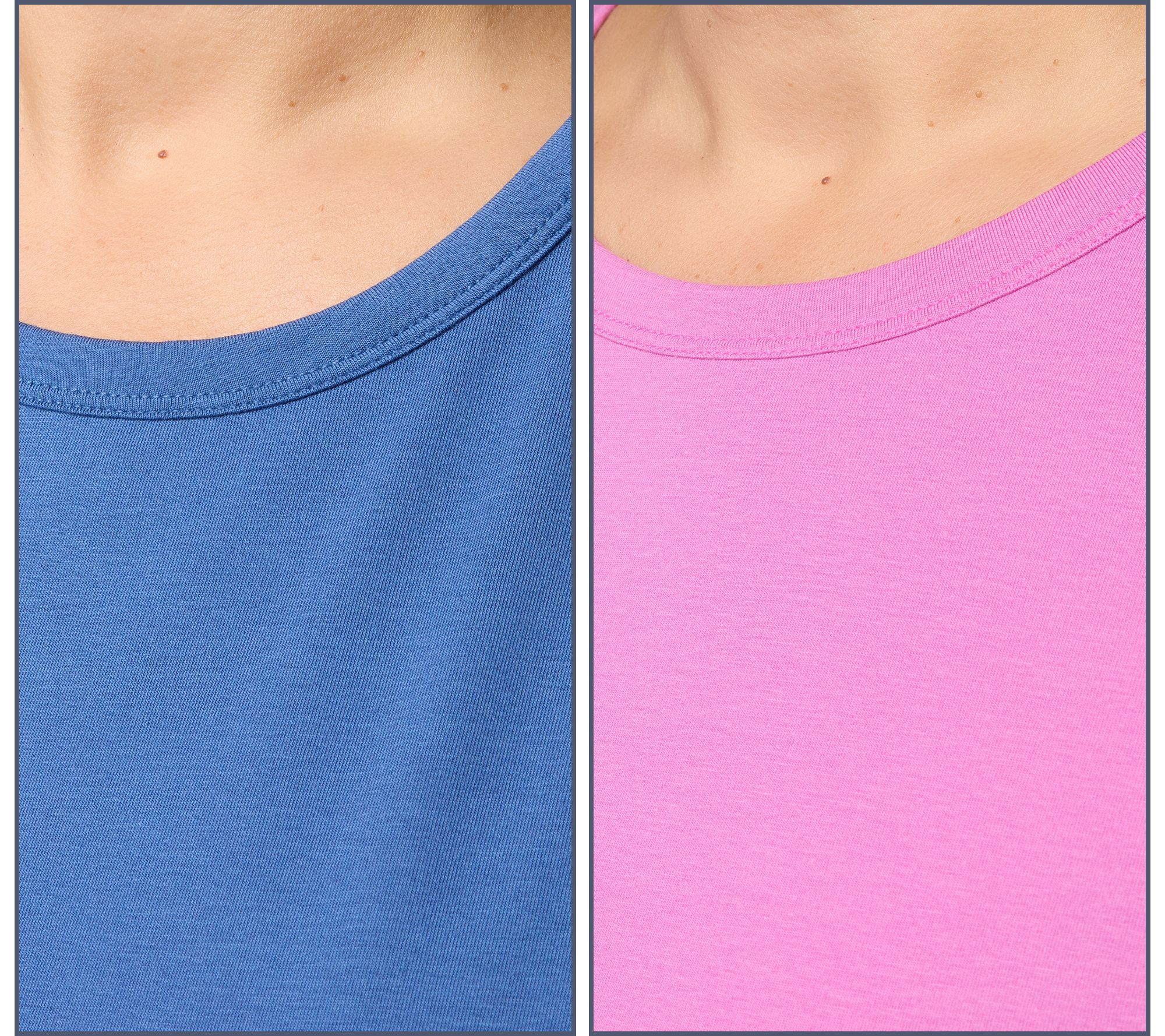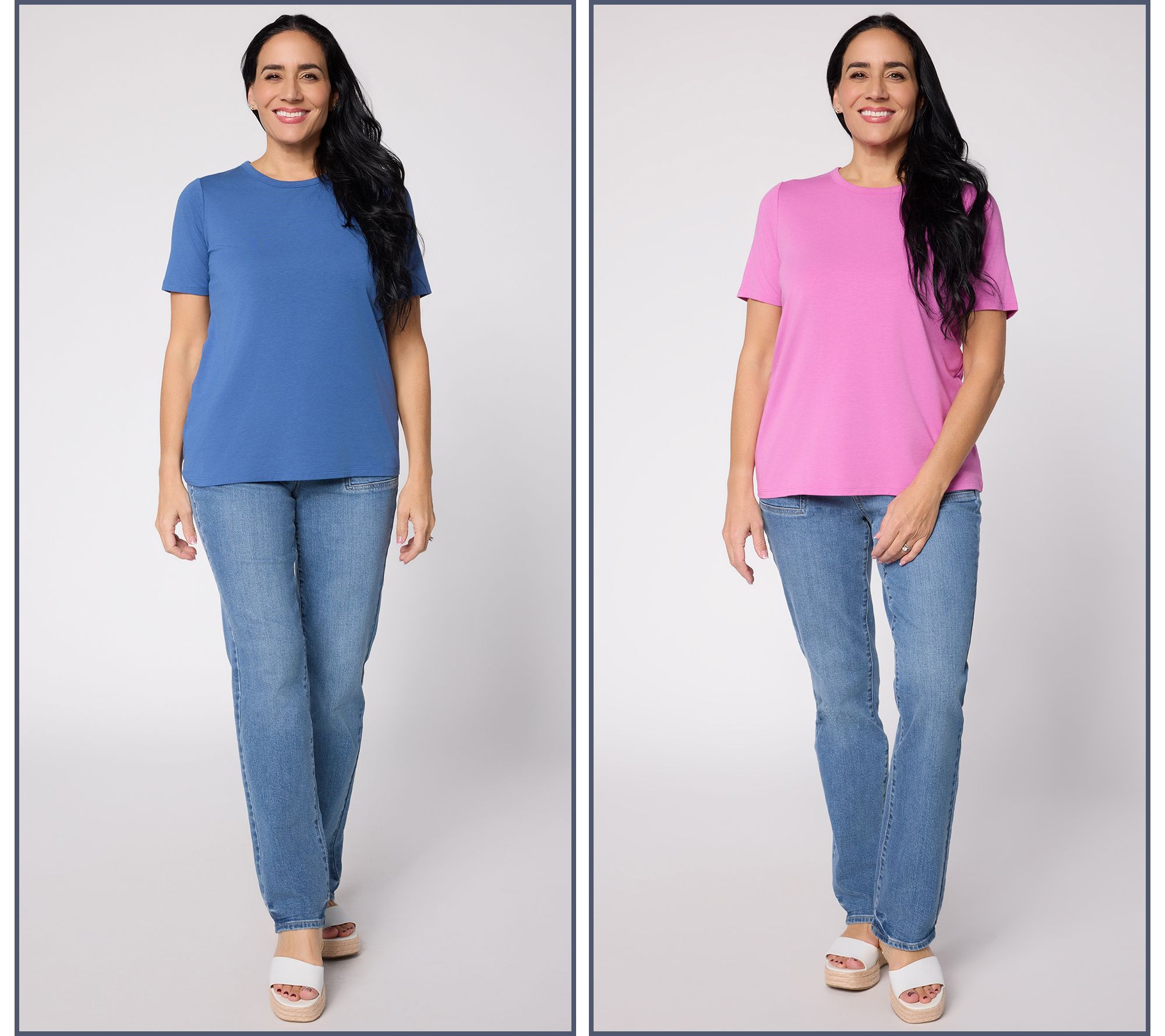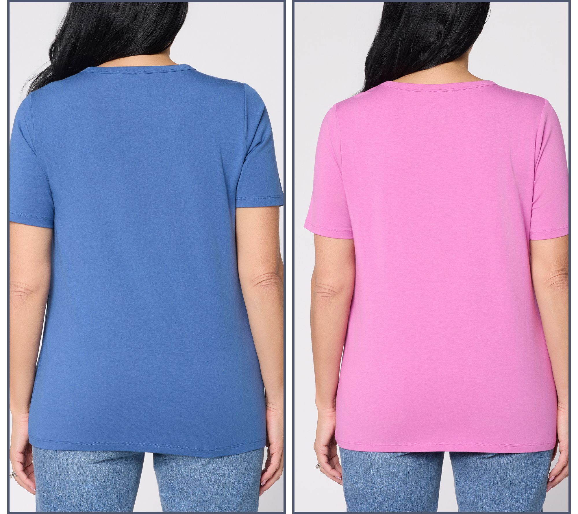 Ready for morning routines or laid-back movie nights, this pack of two knit tees was made for every part of your day. Soft stretch, classic round neckline, and short sleeves create easygoing comfort you'll love to pair with jeans, joggers, or skirts. From AnyBody®.