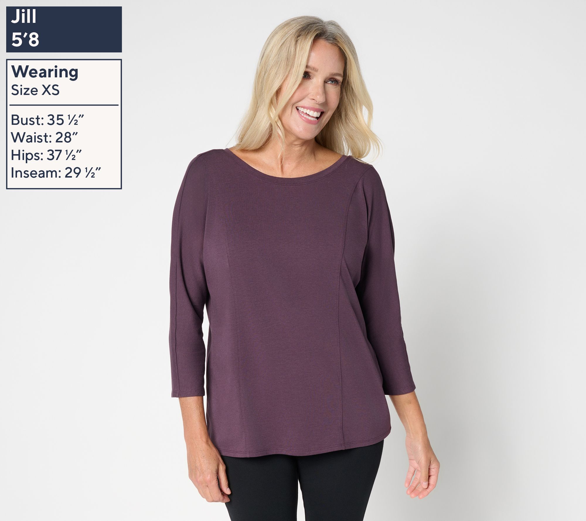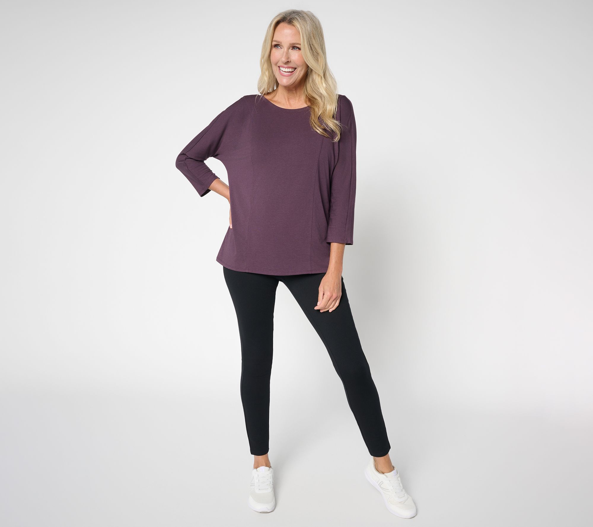 Feel-good fabric makes this top a versatile choice for everything from coffee runs to relaxed evenings at home. The twist detail at the back neck and 3/4-length sleeves add a modern touch to your favorite jeans or leggings, while the semi-fitted silhouette provides all-day comfort and style. From AnyBody®.
