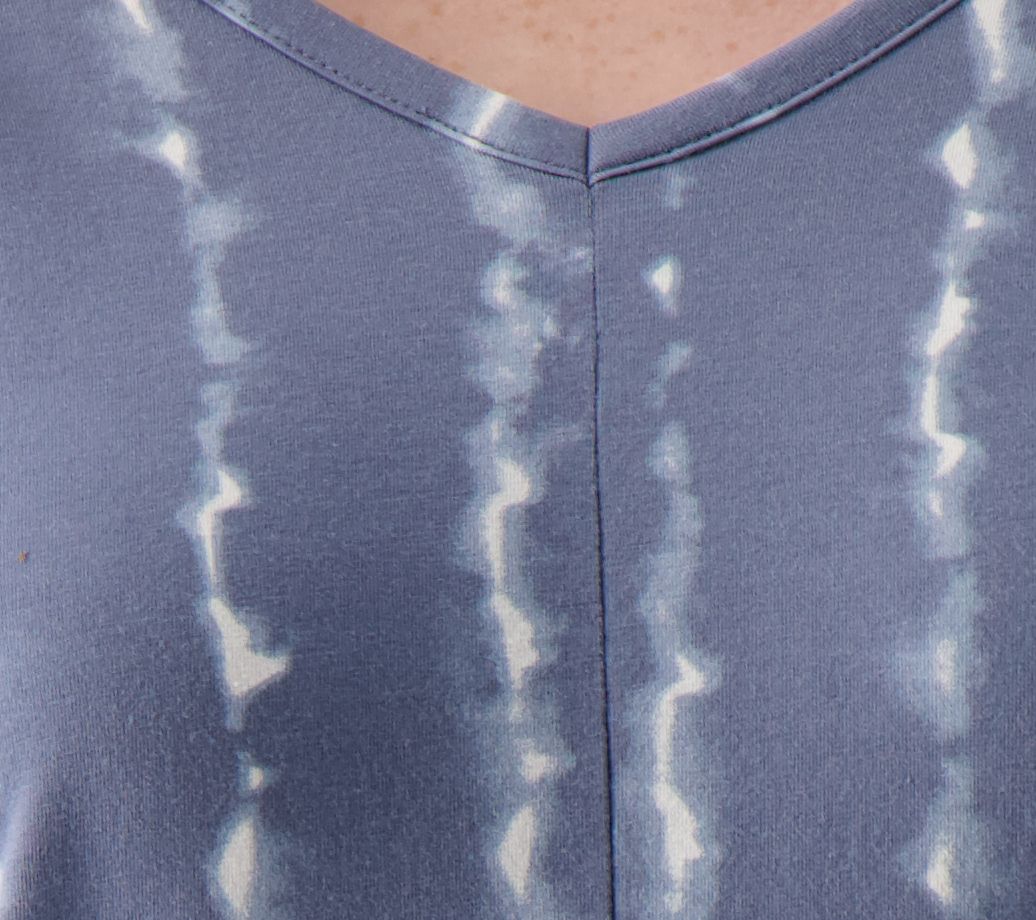 Features: V-neckline, dolman sleeves, metered shape at center-front V-neckline, shoulder inset panel detail, self two-ply sleeve cuff, straight bottom hem