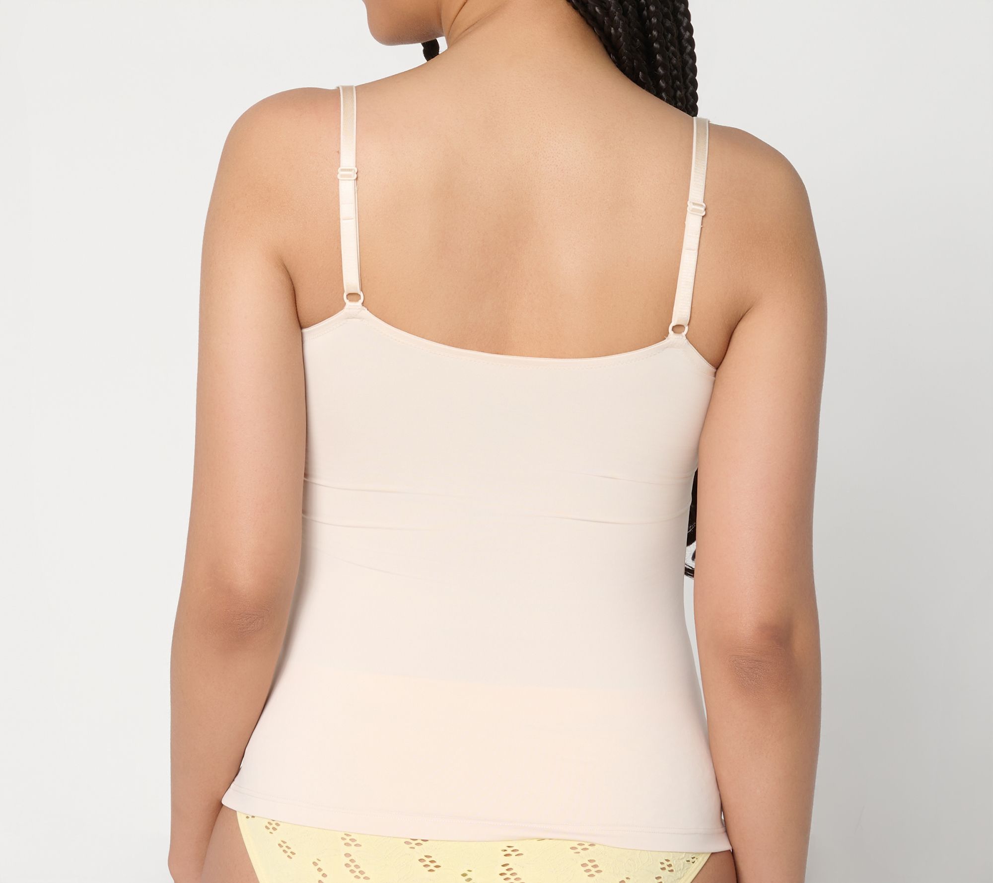 Whether you layer it under a blouse for all-day ease or relax at home in simple comfort, this soft support tank offers light shaping plus coverage where you want it. The molded cups, lace-trimmed V-neck, and adjustable straps blend support with a feminine touch -- making it a smart addition to your everyday essentials. From AnyBody®.