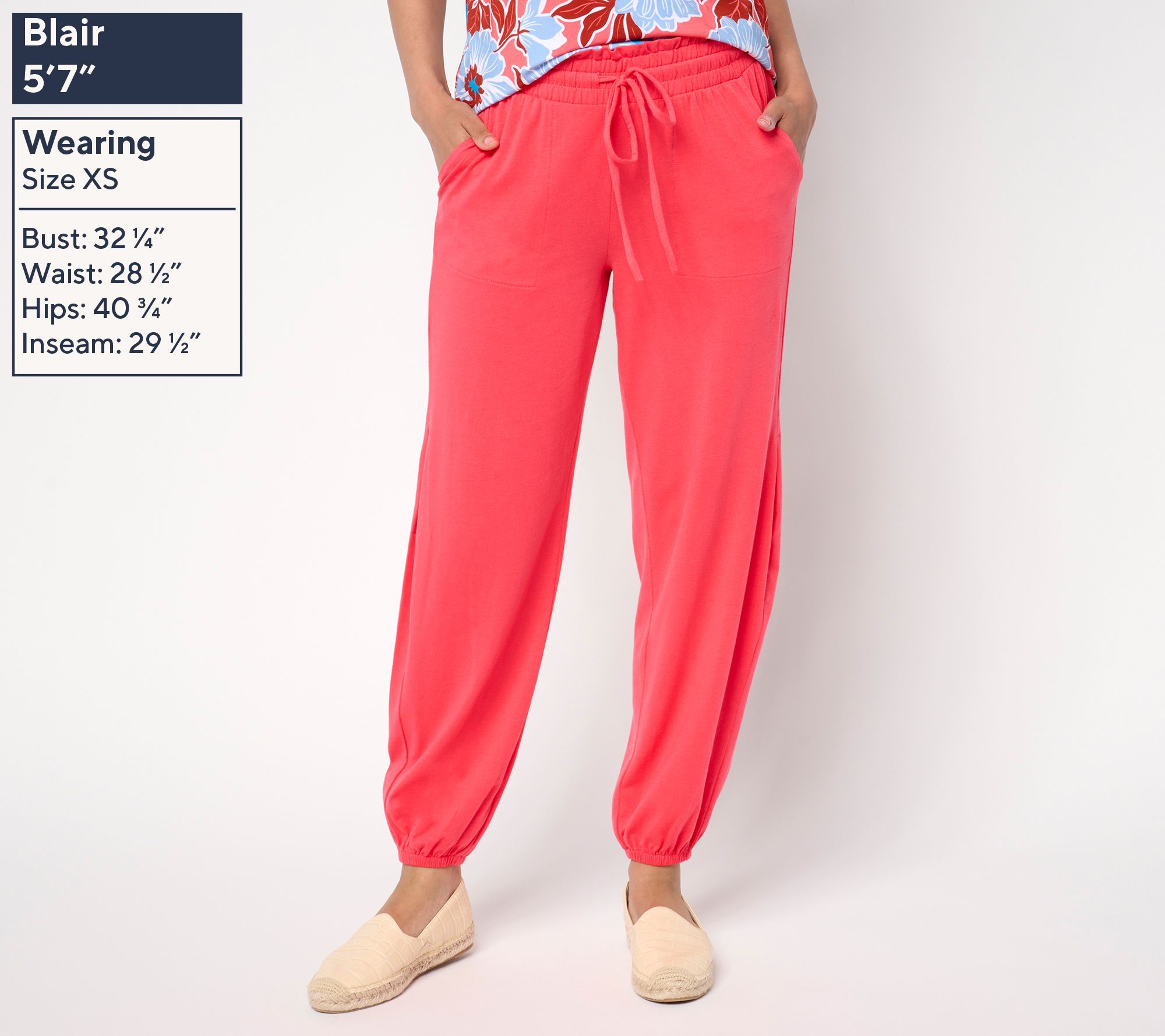 Prepare for classic comfort and style while lounging or running errands with these Cozy Knit jersey pants. The pleated side seams and jogger bottom deliver a trend-right style, while the relaxed fit and at-the-waist rise mean you'll want to wear them all day. From AnyBody®.