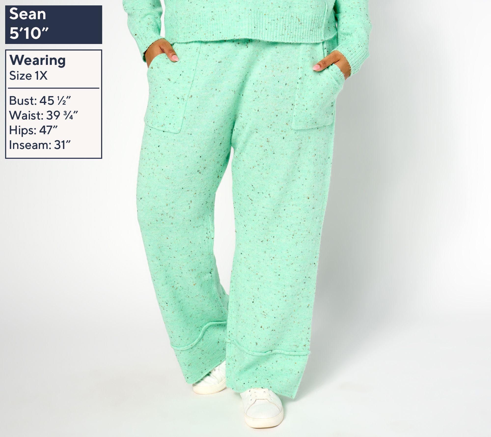 A cozy day at home or an afternoon out and about? Take your me-time lounge look to the next level with the AnyBody® flecked sweater pants. The wide-leg fit grants you stylish ease, so you can make comfort your fashion statement. From AnyBody® Lounge and Sleepwear.