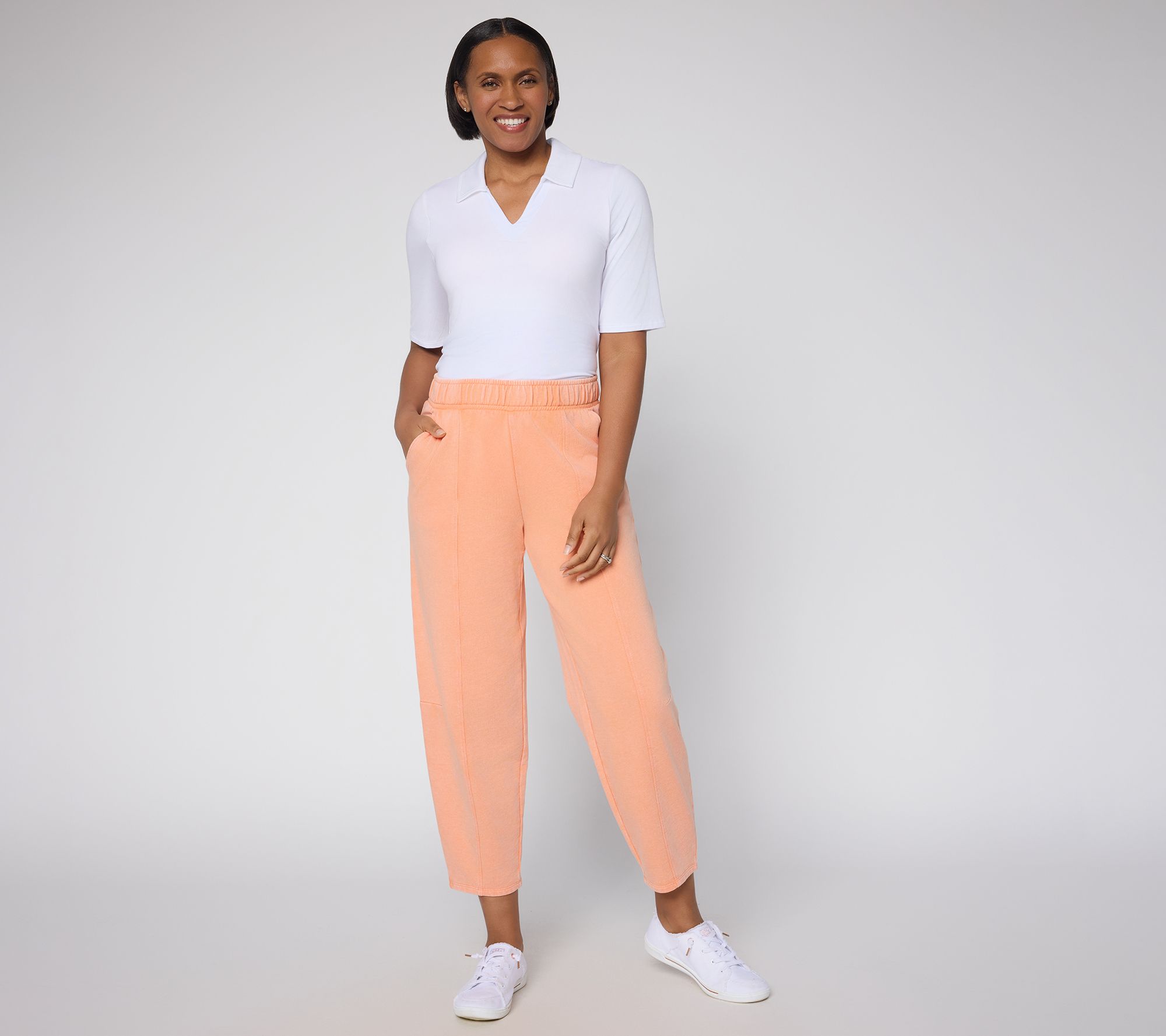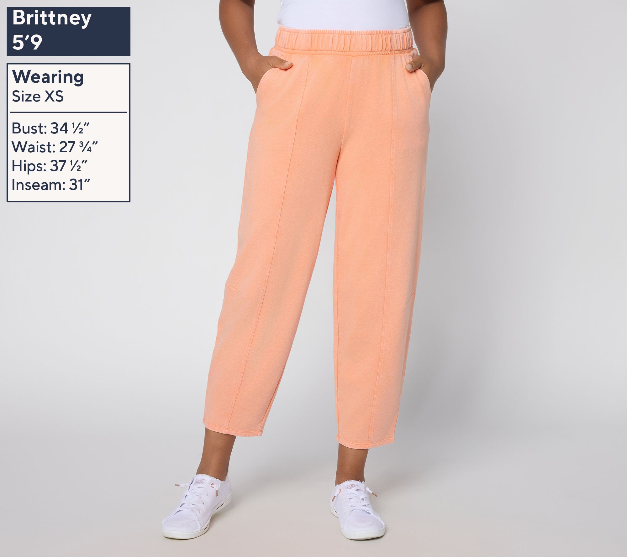 Out-the-door moments call for style that moves with you, and these French terry barrel ankle pants deliver. Bringing an easygoing (and on-trend!) look with their softly structured barrel silhouette and front seam detail, the slash pockets and elastic pull-on waistband make these pants a practical option for casual outings, pairing well with sneakers or slides. From AnyBody®.