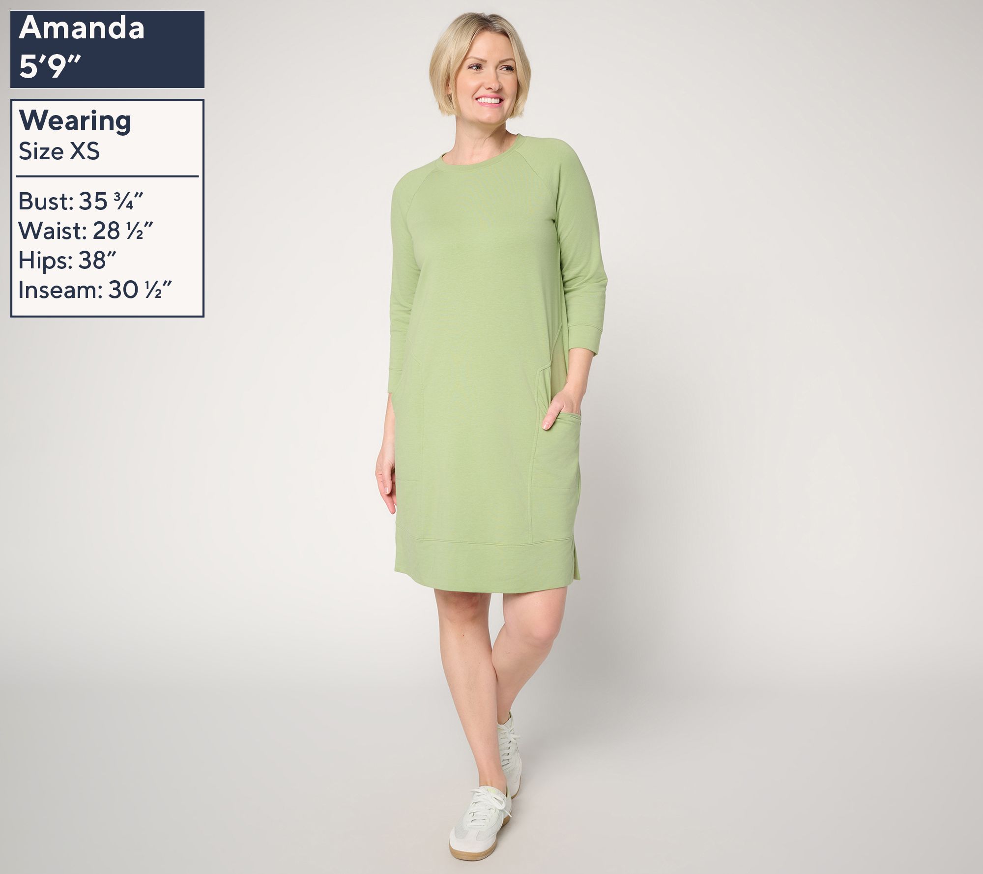 Best (casual) dressed. In Cozy Knit™ French terry, this sneaker dress wins big for weekend travel plans, neighborly get-togethers, and shopping runs. Pair with all your favorite sneakers (duh!), sunglasses, and a spirited step. From AnyBody®.
