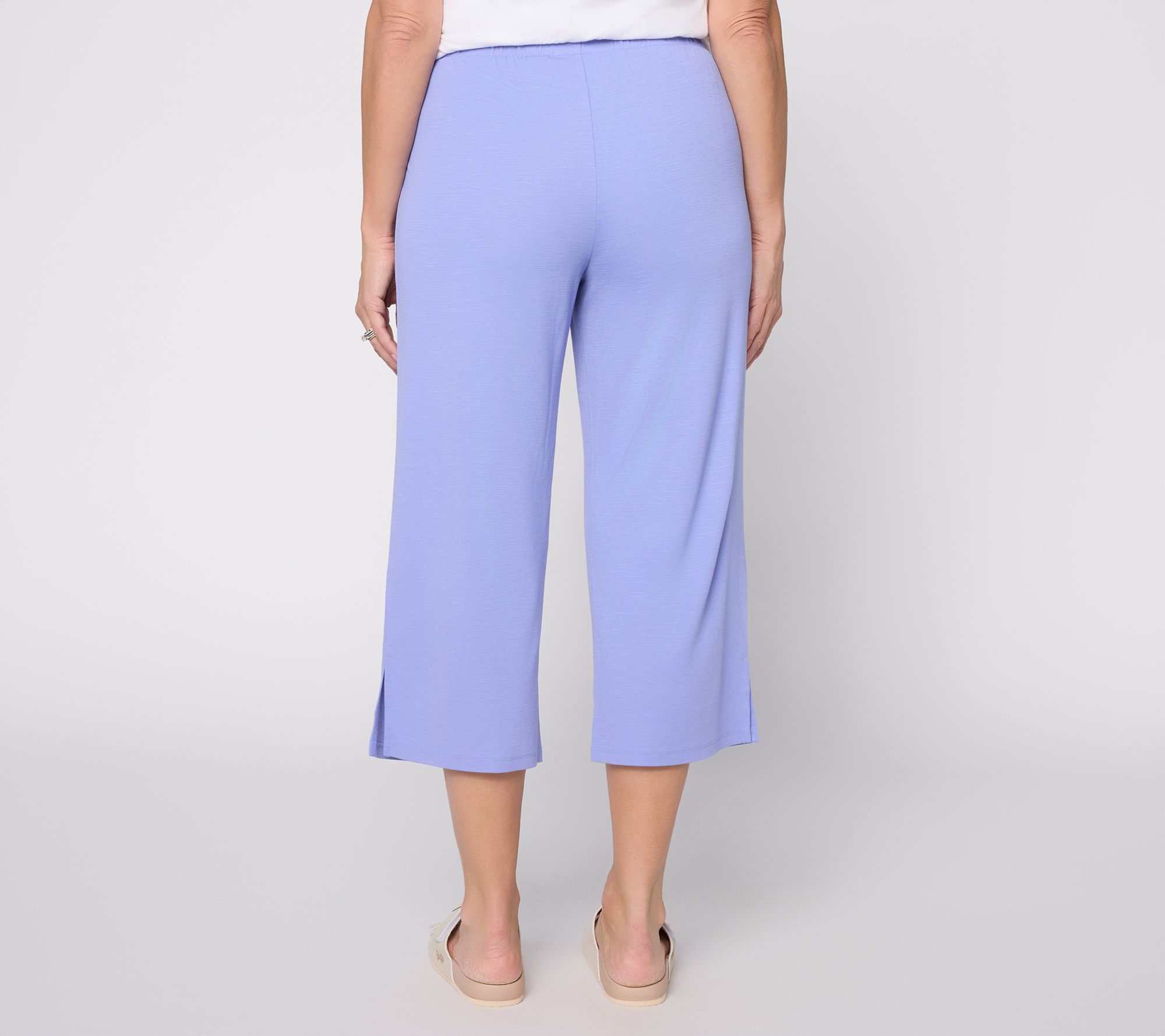 Whether you're strolling the boardwalk or relaxing with friends, these knit capri pants offer breezy comfort with stylish ease. A straight-leg design and side slits lend a contemporary vibe, while the elastic waistband makes for simple pull-on wear. From Modern Soul x AnyBody®.