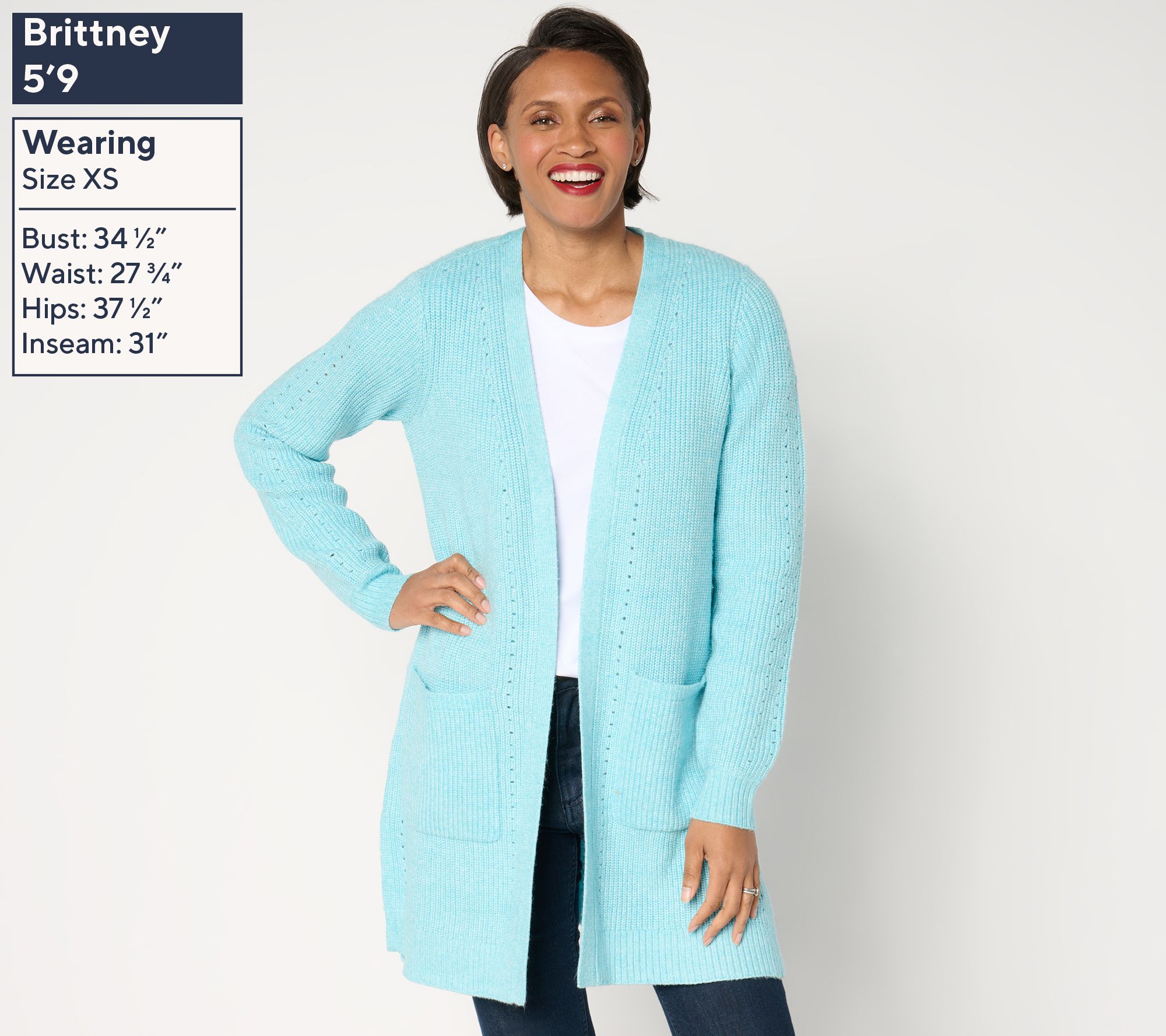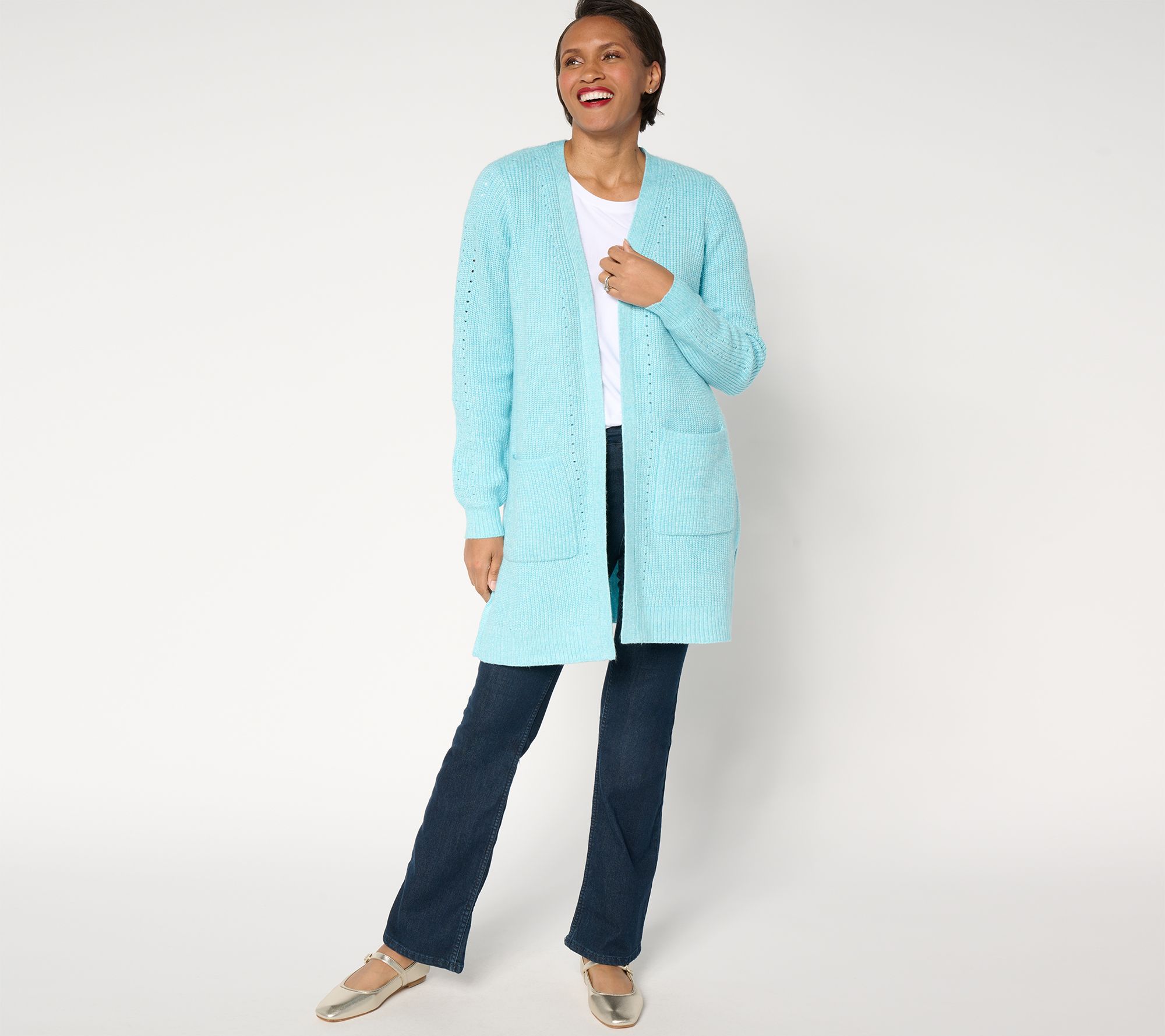 AnyBody Sweater Cardigan with Pointelle Stitch Detail