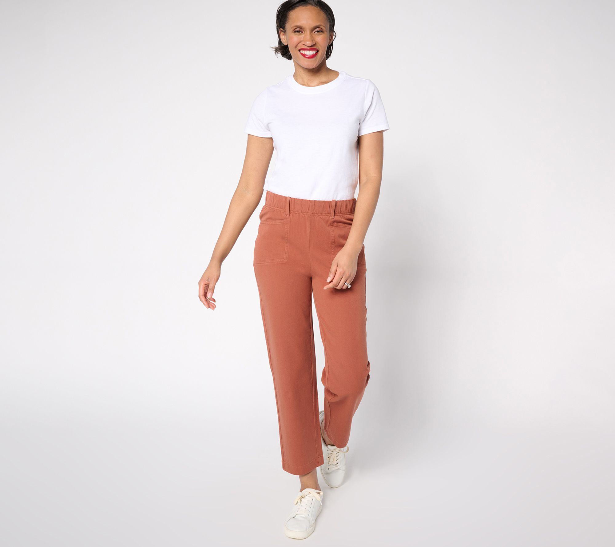 Enjoy a traditional tailored silhouette in a feel-good fabrication with AnyBody's All-Stretch twill pull-on ankle pants. Dressed up or down, the versatile separate gives you a polished presentation for office days, a laid-back look for lunch with the ladies, or a stepped-up style for evening drinks. Made from the supremely soft All-Stretch twill, the bi-stretch construction provides horizontal and vertical stretch for maximum movement (and we absolutely love the plush interior waistband for added all-day comfort). Not too hot, not too heavy, the just-right style takes you from spring celebrations to summer soirees in fab fashion -- while giving your favorite footwear and standout accessories an opportunity to shine (yay, strappy wedges!). From AnyBody®.