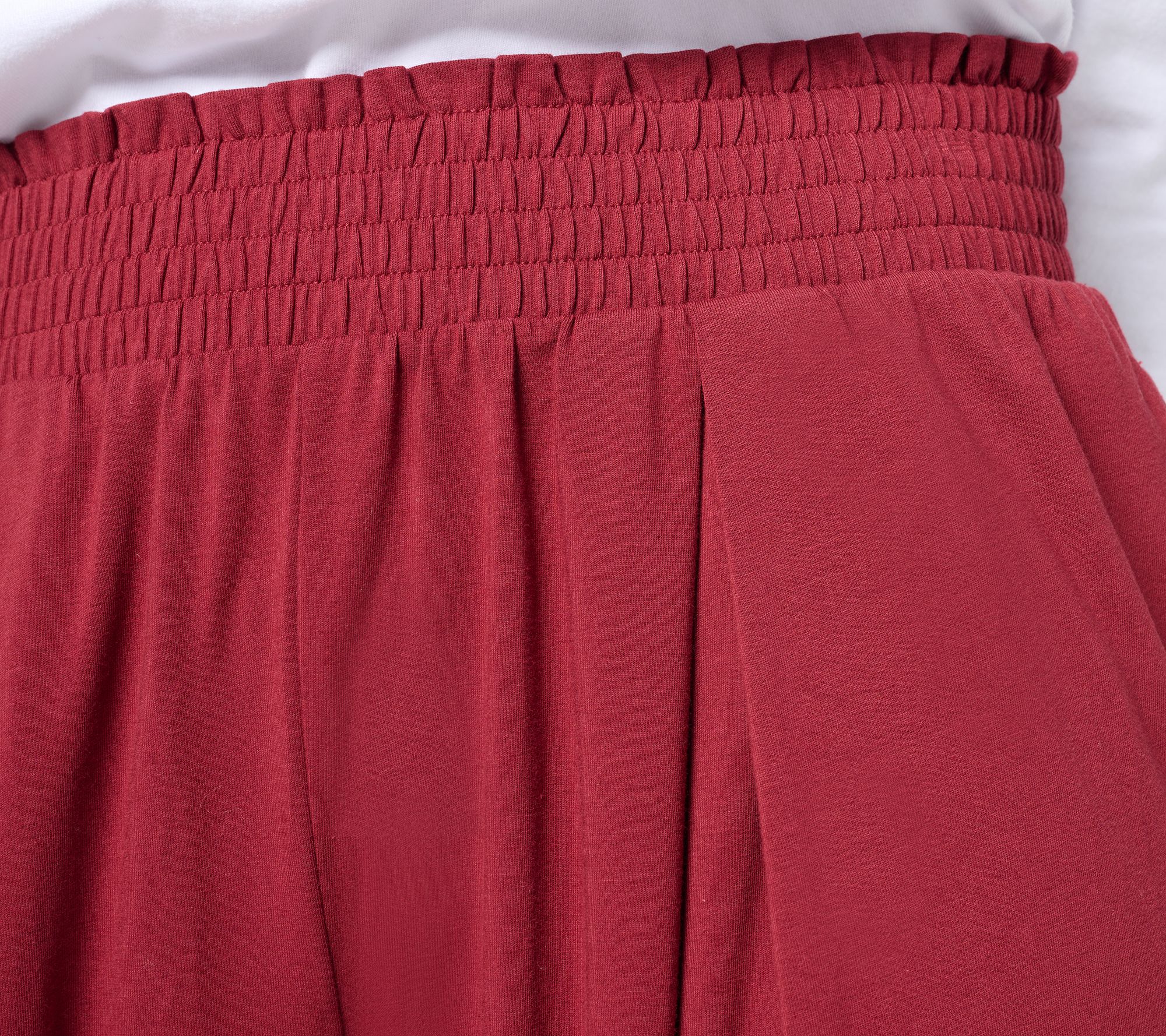 • Features: smocked waistband, smocked hem, inverted front pleats, on-seam pockets