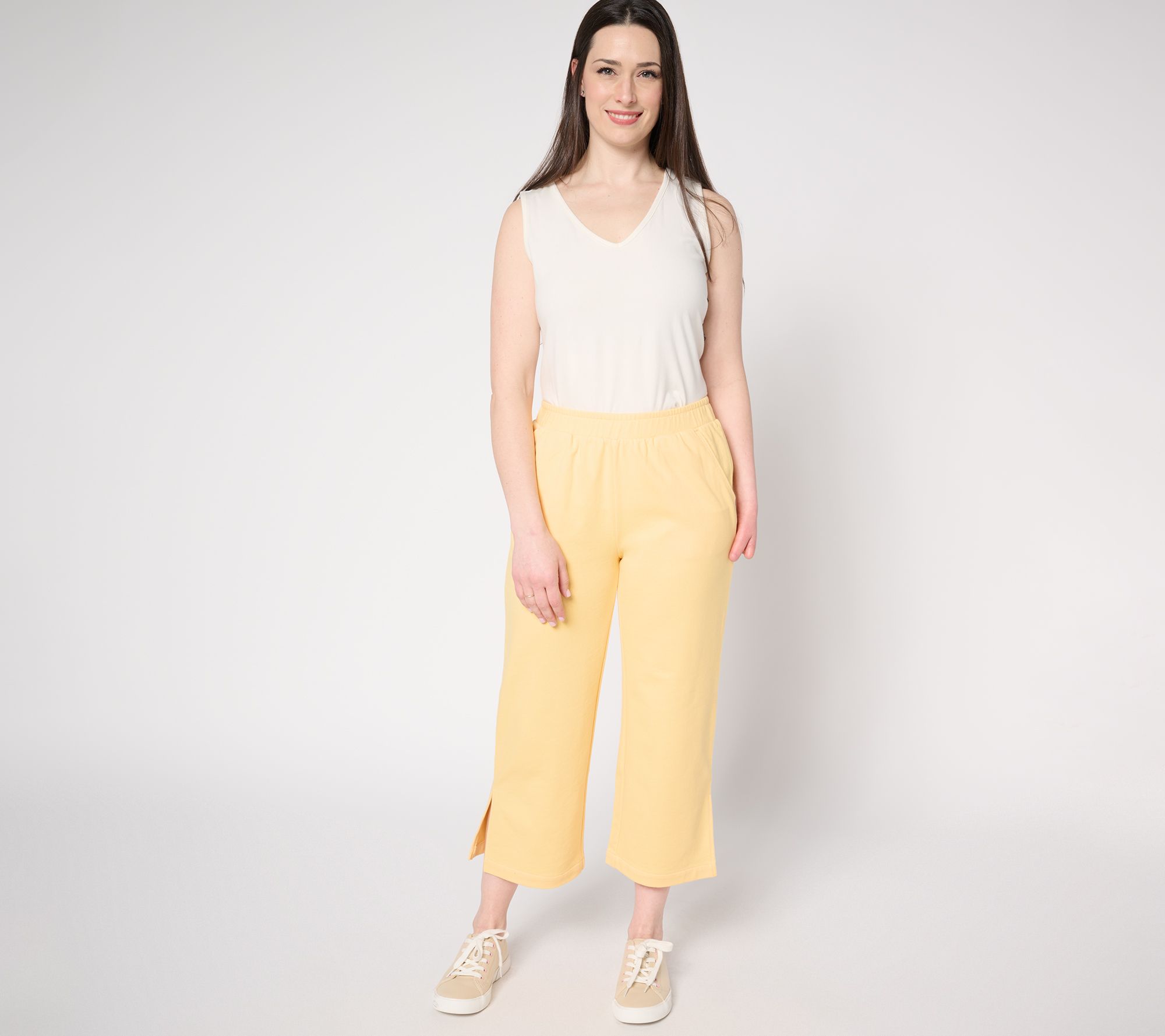 Update your casual classics with these French terry cropped pants. Complete with side seam pockets and side slits, the feel-good fabrication provides a comfortable vibe for lounging around the house or laid-back outings. From AnyBody®.