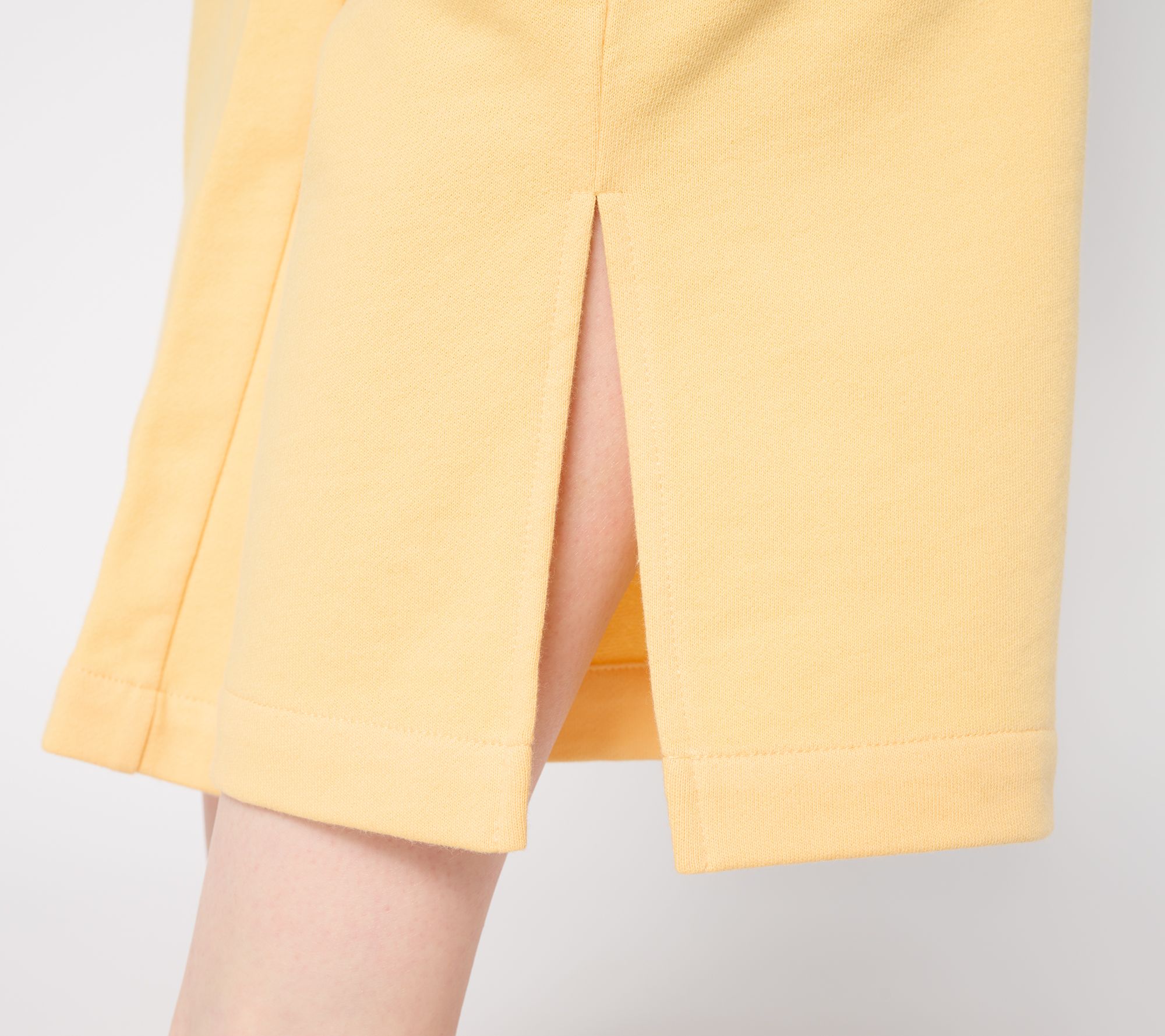 Features: encased elastic waistband, side seam pockets, side slits