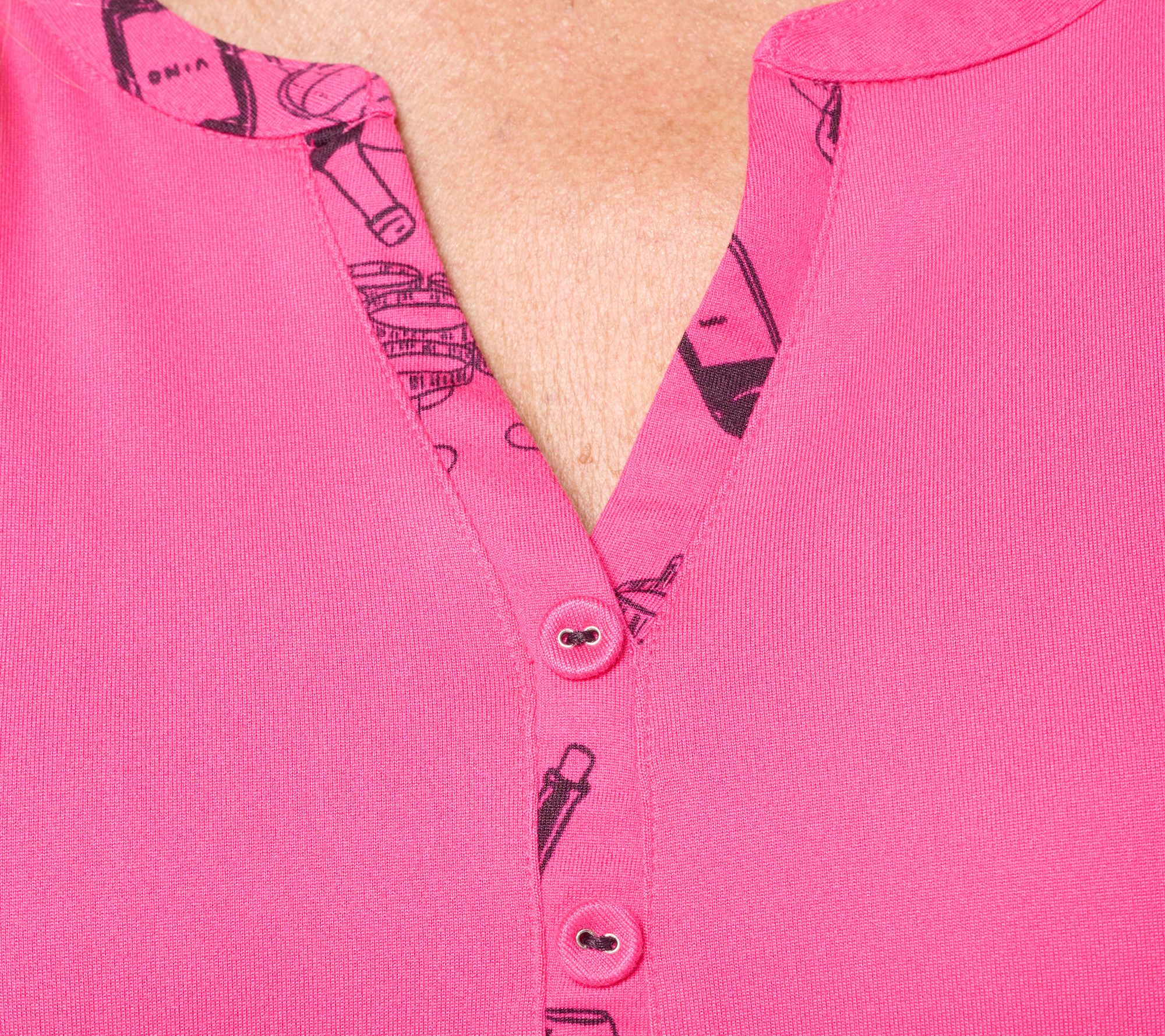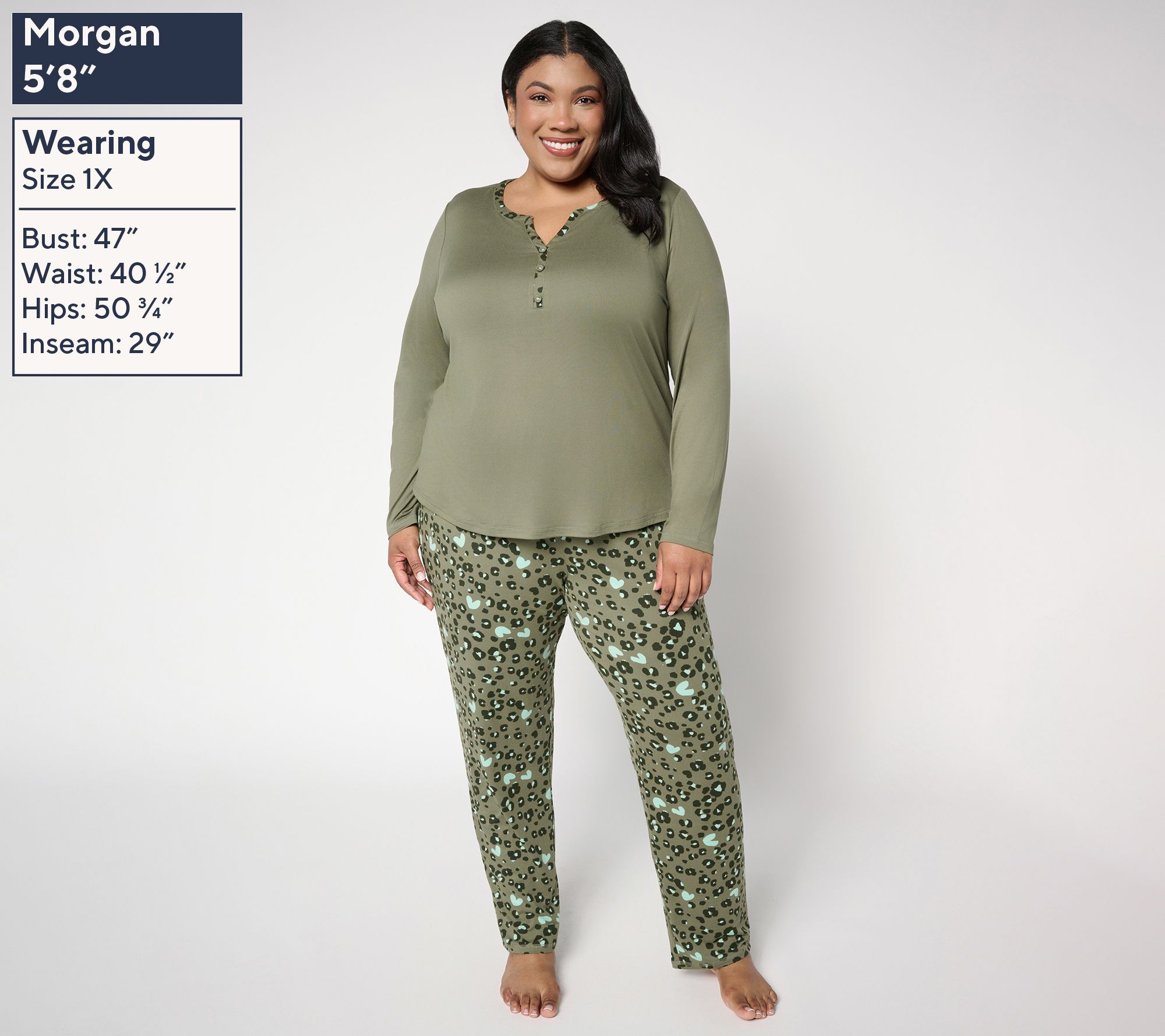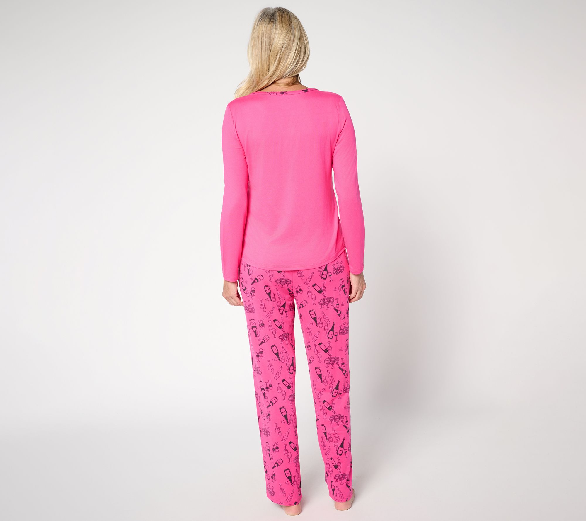 Your down time is more comfortable (and cute!) than ever with this lush jersey pajama set. The henley top is fashioned with long sleeves, while the ankle-length pants have an easy pull-on style. From AnyBody®.