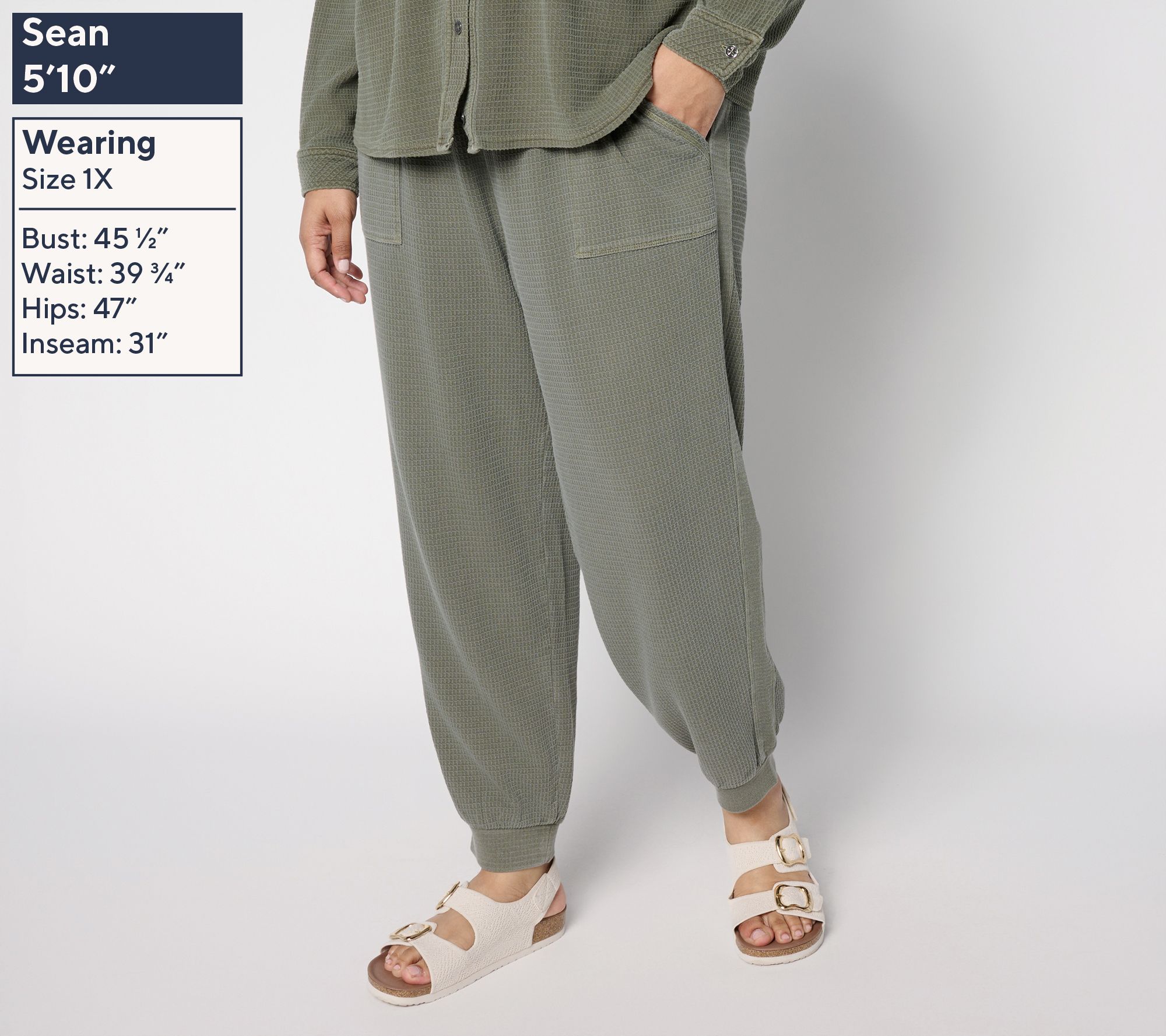 For those relaxed days when comfort calls, these washed waffle knit joggers step up with soft texture and an easy pull-on waist. The tapered-leg shape and front pockets give you that coziness you crave, while the elastic waistband ensures a just-right fit for everything from lounging to casual outings. From AnyBody®.
