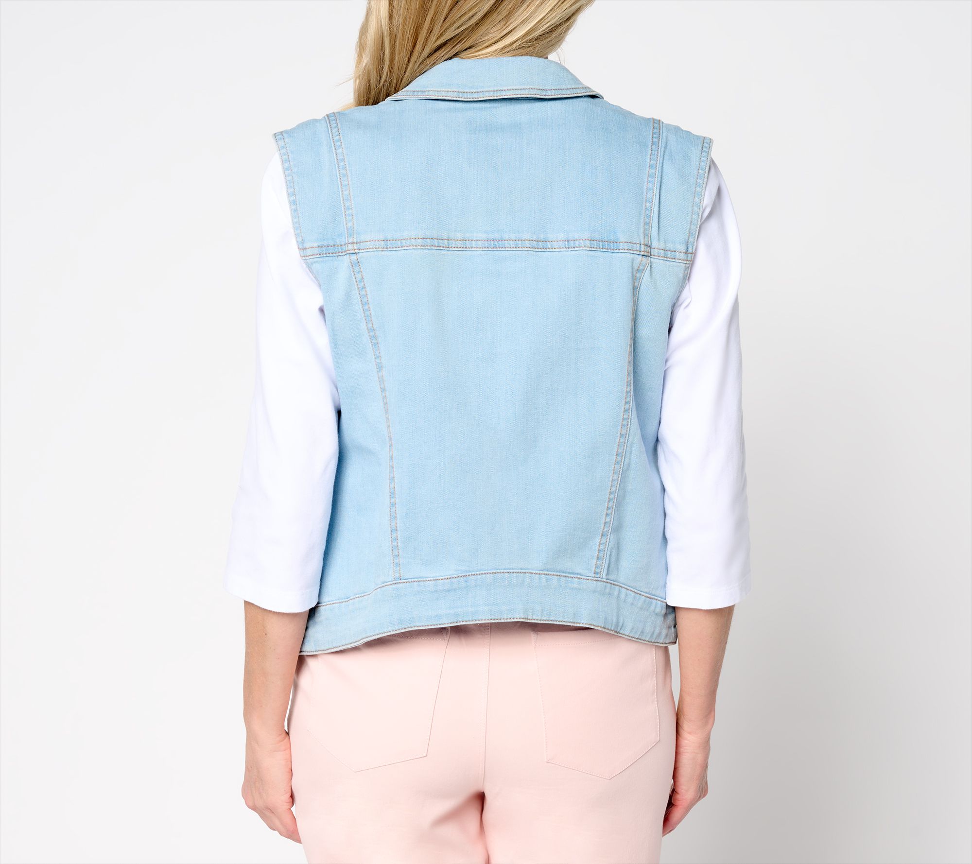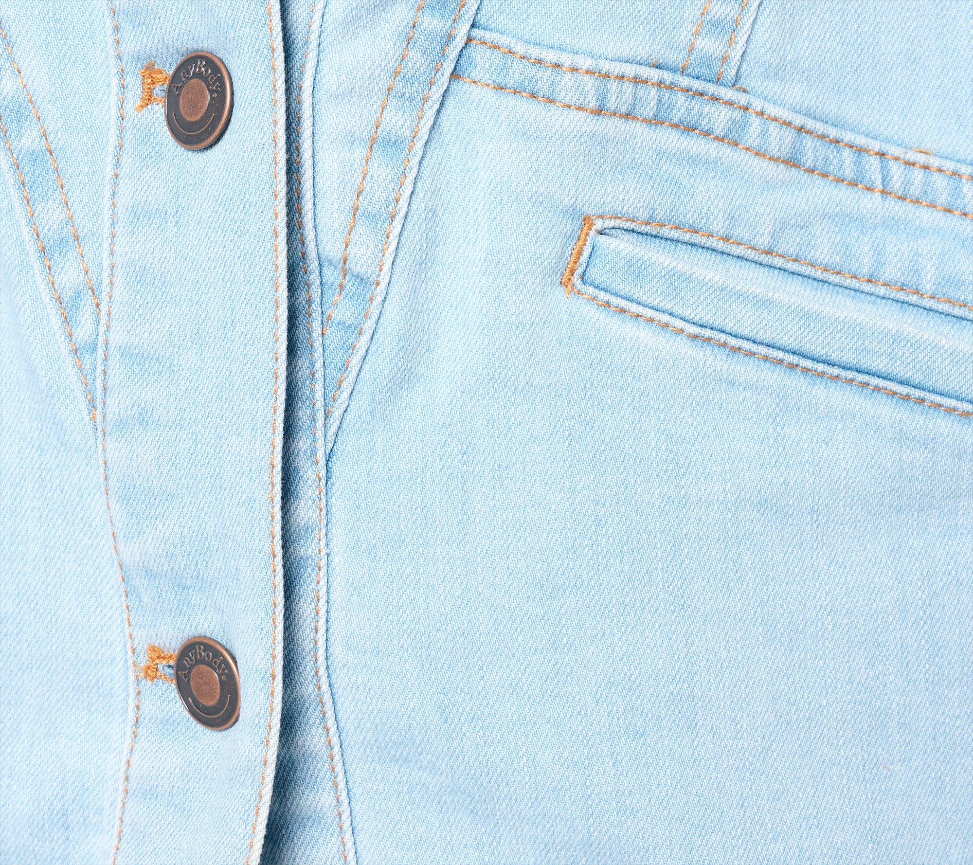 Now showing on seasonal 'fit mood boards: AnyBody's denim vest! Create your next look of confidence with this versatile third layer. The washed fabric and visible princess seaming provide a fresh twist and flattering silhouette fit for, well... any body! It makes an ideal layer over tees or dresses for a casual yet chic look. From AnyBody®.