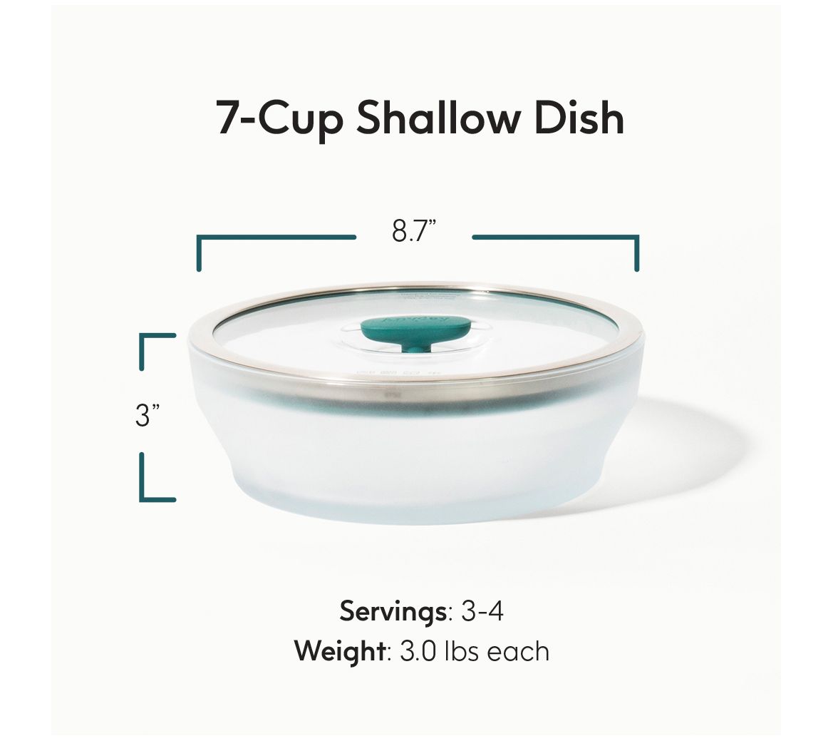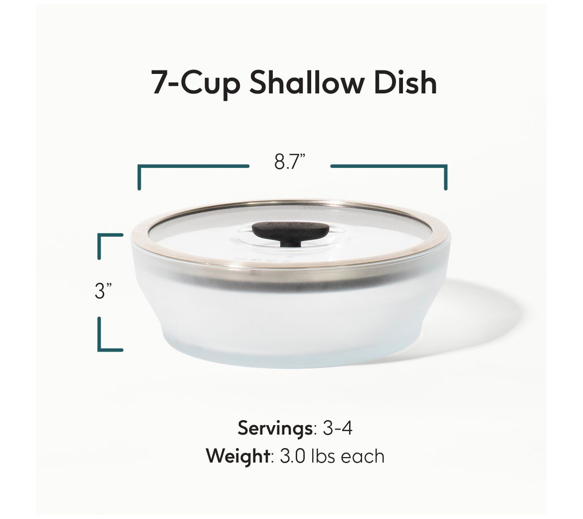 • Includes one large shallow dish with lid, three recipes cards, and booklet