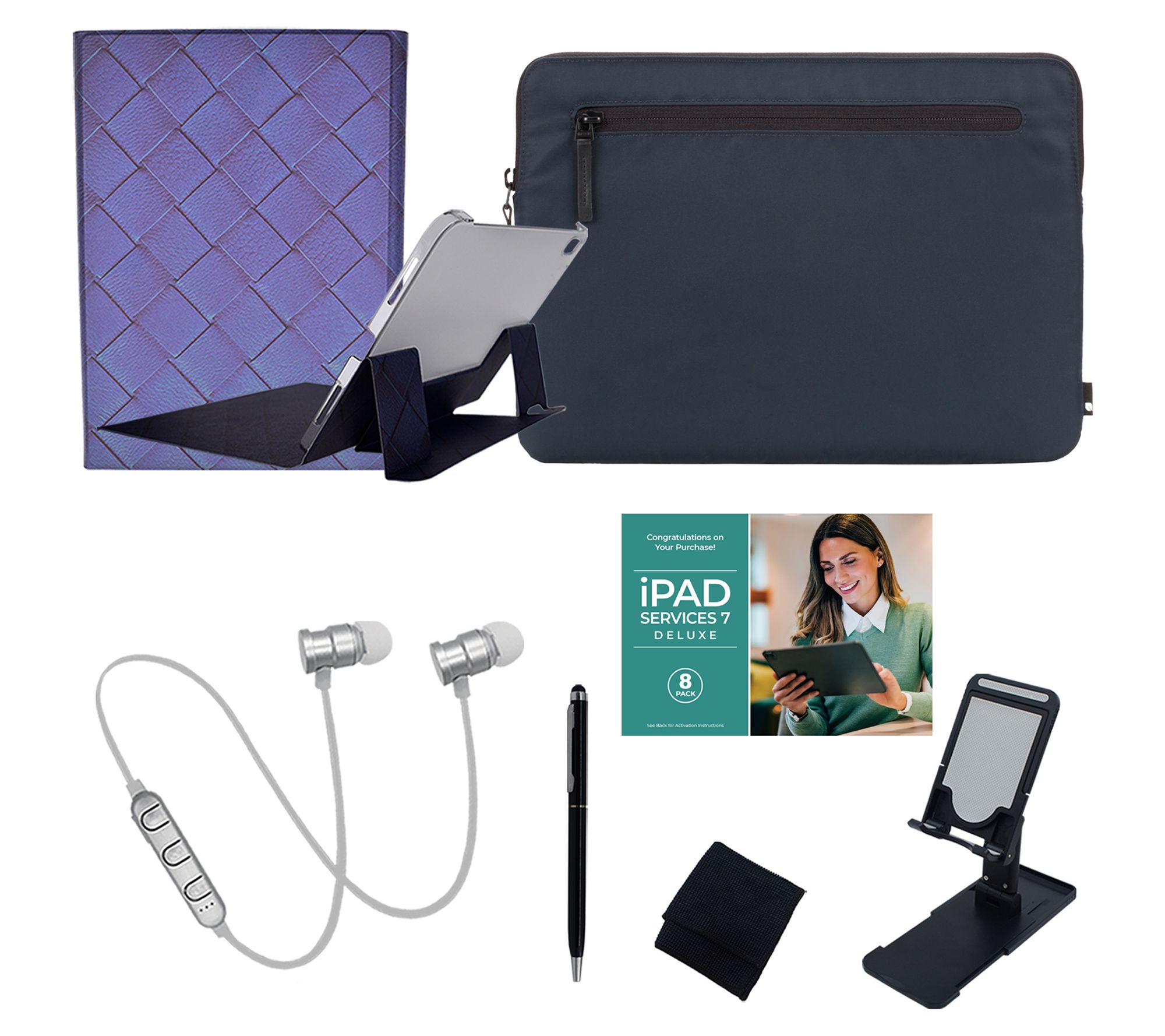 • Includes 11th-generation iPad with USB-C charging cable and 20W USB-C power adapter; Incase sleeve, wireless keyboard, earbuds, stand, stylus pen, cleaning cloth, and voucher