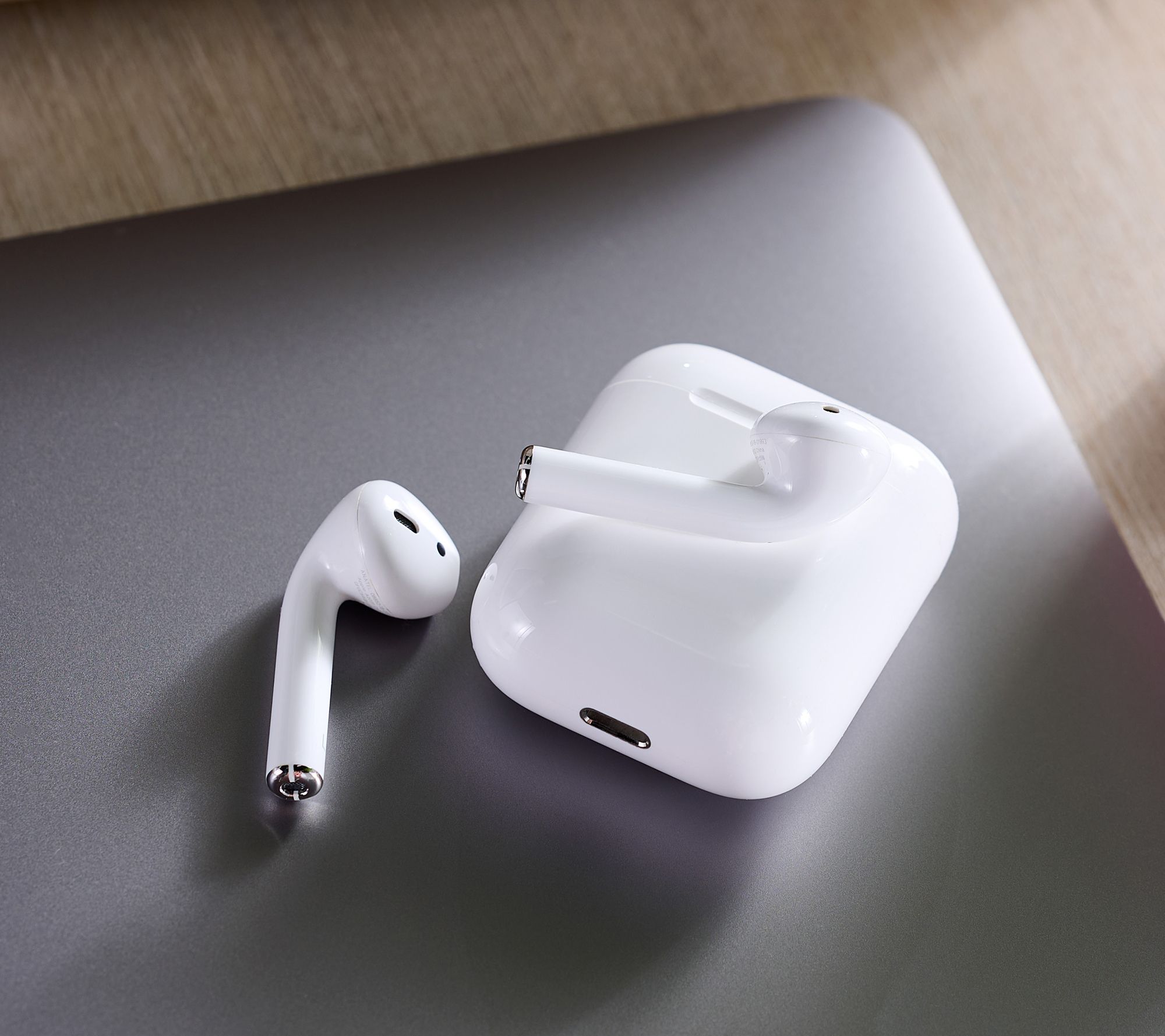 Includes second generation Apple AirPods with wired charging case and Lightning-to-USB cable; charging stand, silicone sleeve with carabiner, hard carry case, and voucher