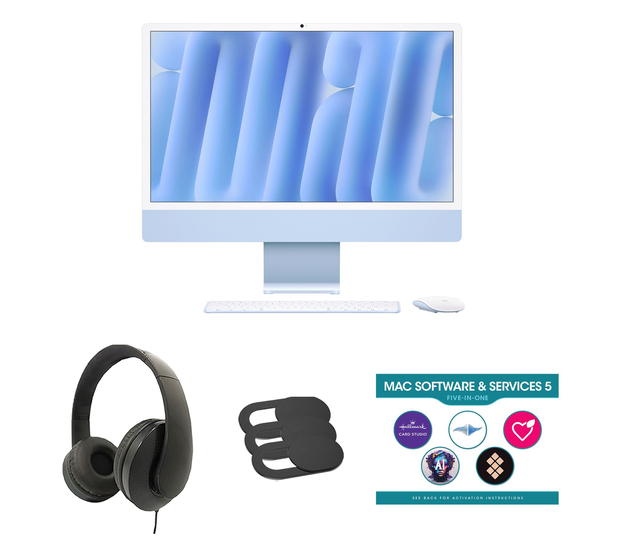 Includes iMac, power adapter, Magic Mouse, Magic Keyboard, and USB-C charge cable; headphones and voucher