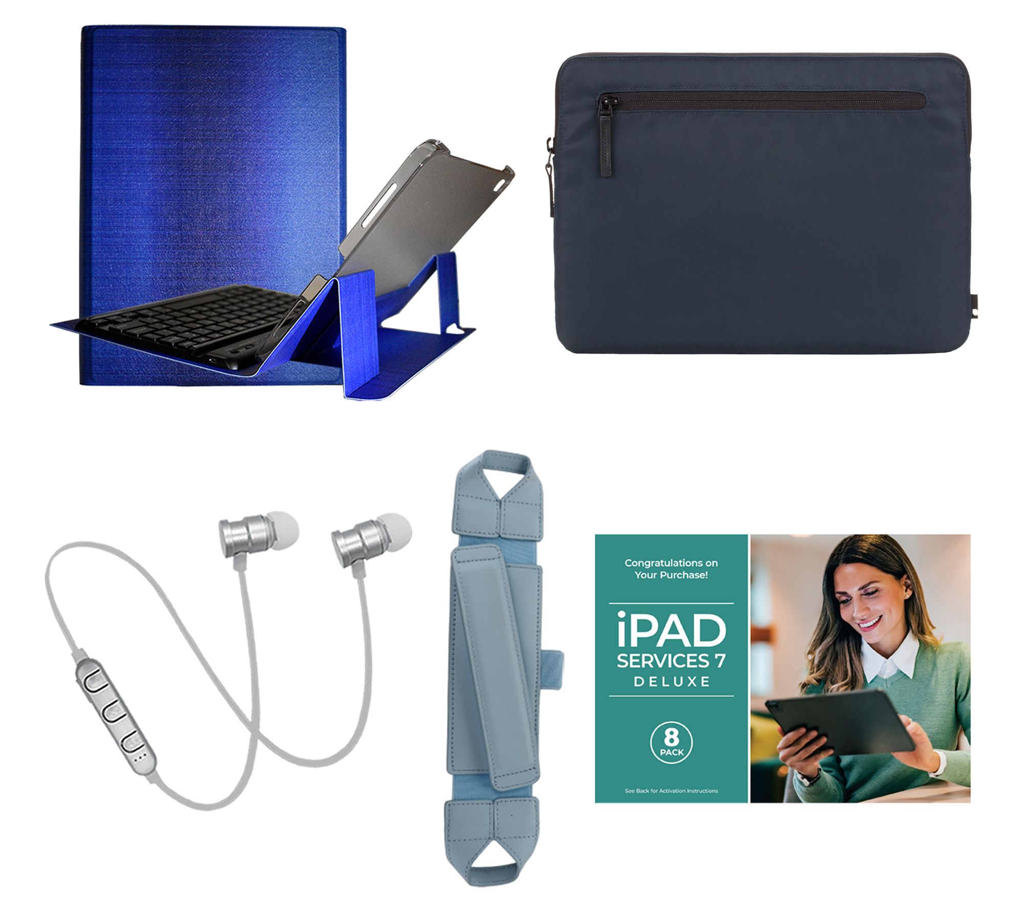 • Includes 10th-generation iPad with USB-C charging cable and power adapter; portfolio case with keyboard, Incase compact sleeve, Bluetooth earbuds, tablet hand grip, and voucher