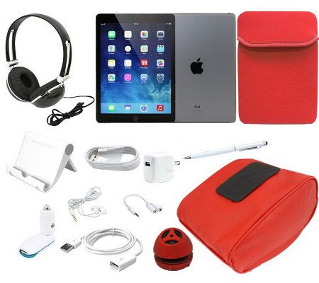 And the accessories? Share your tunes with the Bluetooth speaker--or listen privately with the earbuds and DJ-style hard-shell headphones. Stay powered on the road with the car charger. Keep your iPad Air in the neoprene sleeve, and navigate it comfortably on your lap with the iCozy bean bag.