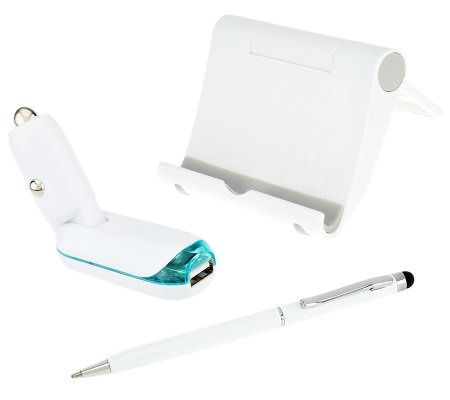 • Includes 32GB Wi-Fi iPad mini, power adapter, Bluetooth keyboard, USB cable, 6'L USB extension cord, car charger, stand, stylus/pen combo, headphone splitter, and earbuds