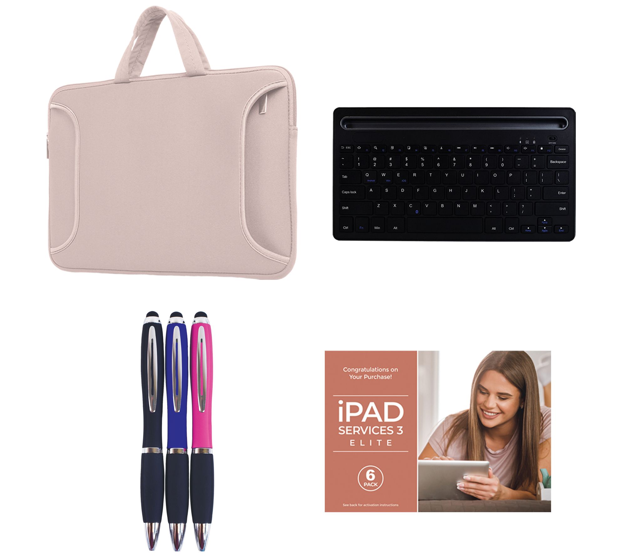 This bundle comes with many handy accessories, including a Bluetooth keyboard, carry case, and a set of three stylus pens to help you get started.