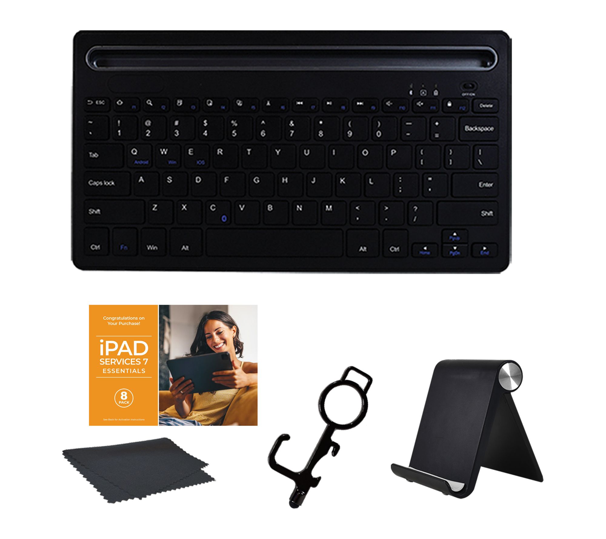 Includes iPad Pro, USB-C charge cable, 20W USB-C power adapter, Bluetooth keyboard, tablet stand, stylus/door opener, and voucher