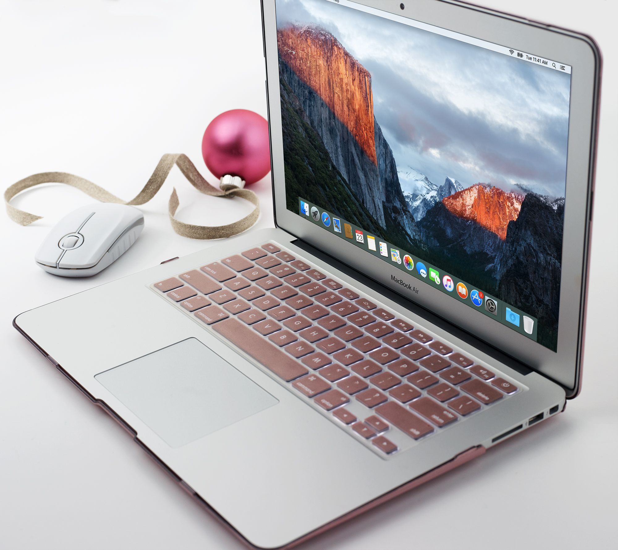 • Includes MacBook Air MQD32LLA/A with power adapter, AC wall plug, and power cord; fitted clip case, keyboard overlay, wireless mouse, mouse pad, four-port USB hub, 6' extension cable, and Productivity Suite 3 for Mac voucher