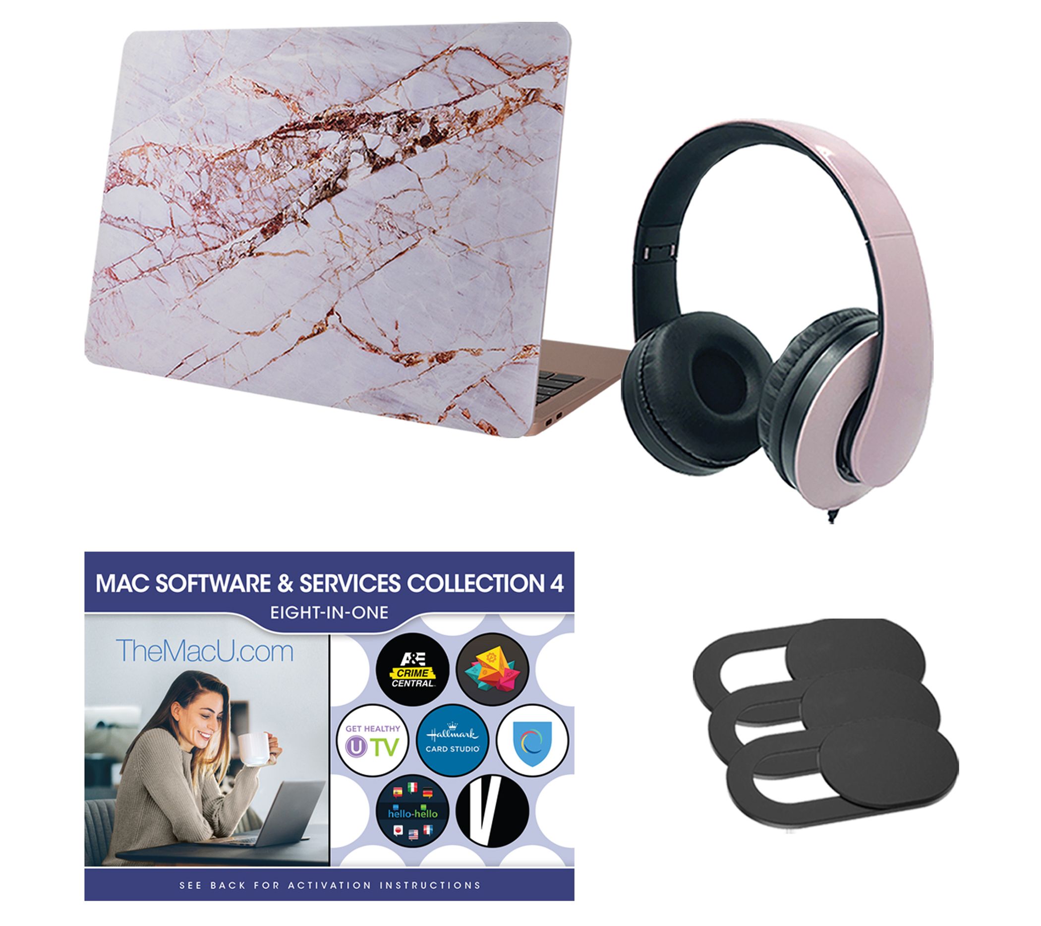 Includes MacBook Air with USB-C power cord, and USB-C charging cable; fitted clip case, wired headphones, three-pack webcam covers, and voucher