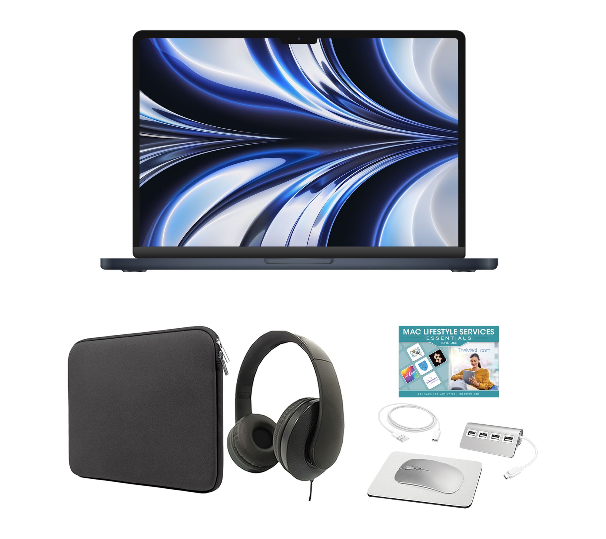 Includes MacBook Air with dynamic power adapter and USB-C to MagSafe 3 cable; carry case, headphones, wireless mouse, mouse pad, four-port USB hub, and voucher