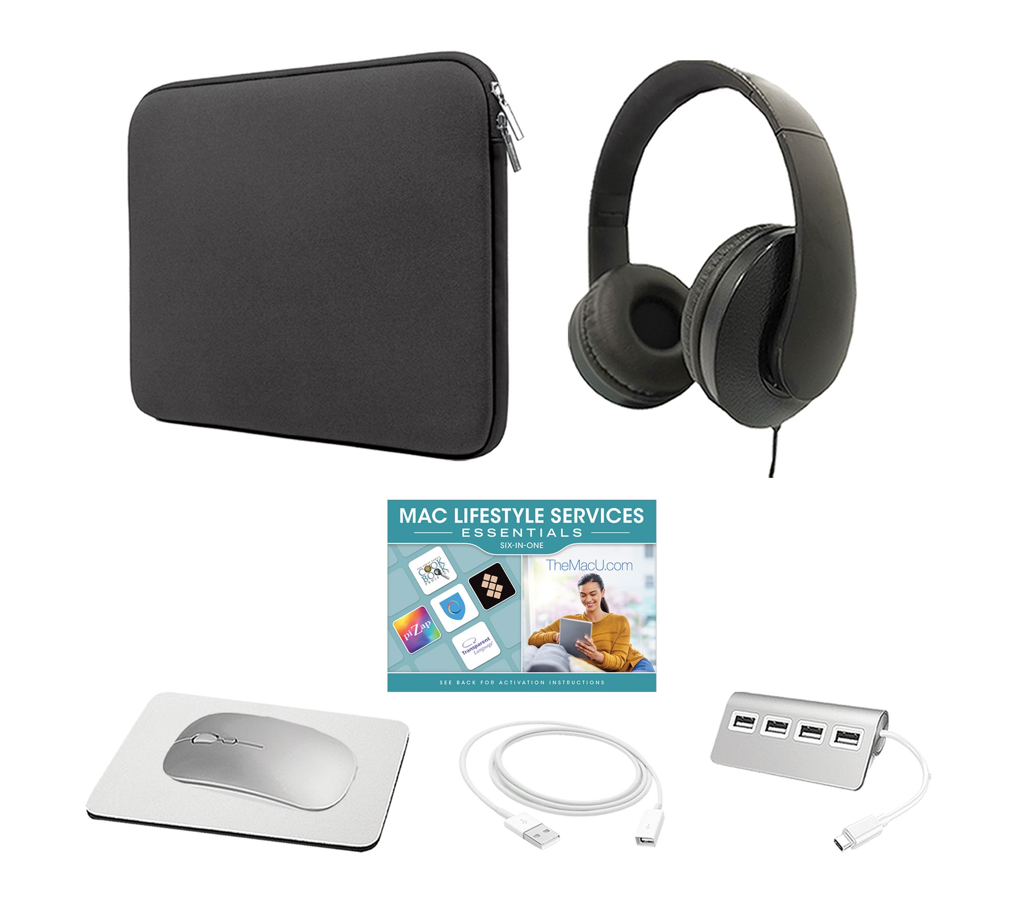 Expand your productivity with this bundle that includes a must-have case, four-port USB hub, wireless mouse, and more!
