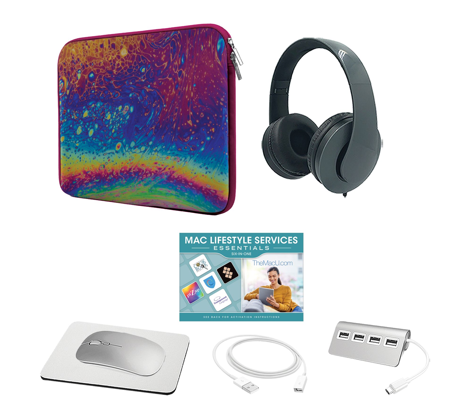 Expand your productivity with this bundle that includes a must-have case, four-port USB hub, wireless mouse, and more!