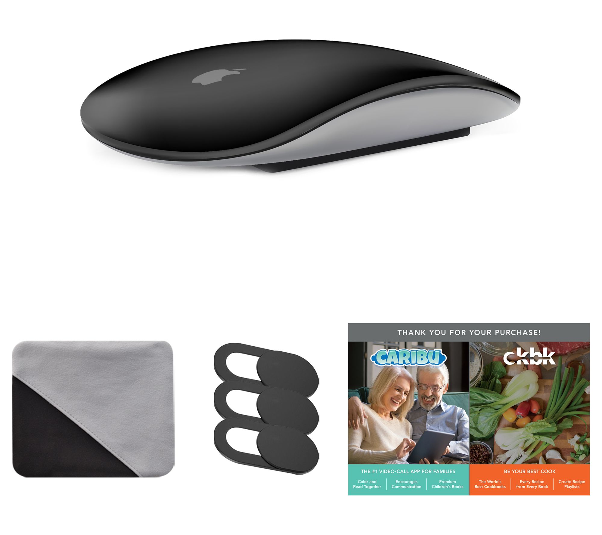 • Includes Magic wireless mouse, USB Type-C to Lightning cable, three webcam covers, cleaning cloth; and voucher