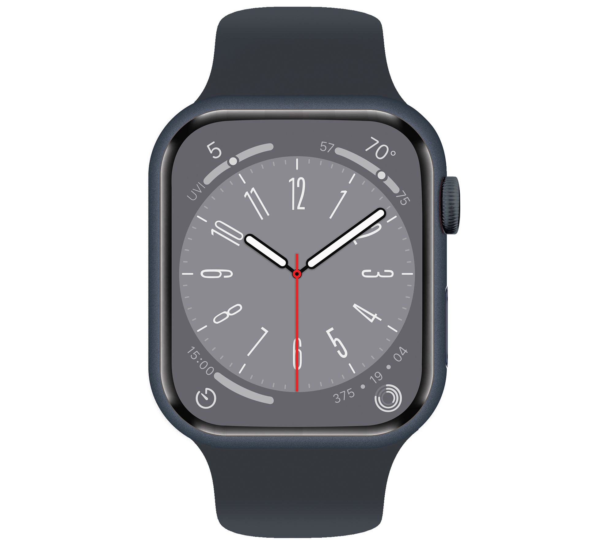 It's the fitness partner that fits on your wrist. Apple® Watch Series 8 features best-in-class health sensors and apps, so you can take an ECG, measure heart rate and blood oxygen, and track temperature changes for deeper health insights. And with substantial upgrades like Crash Detection, advanced features for women's health, and leading-edge workout metrics, it helps you stay active, motivated, and connected when you need it most. (Oh, yeah, and it tells time.) The large always-on display makes tapping, typing, and swiping a snap. And, with a seamless design, it's pretty smart-looking, too. TBH, the future of health never looked so good.