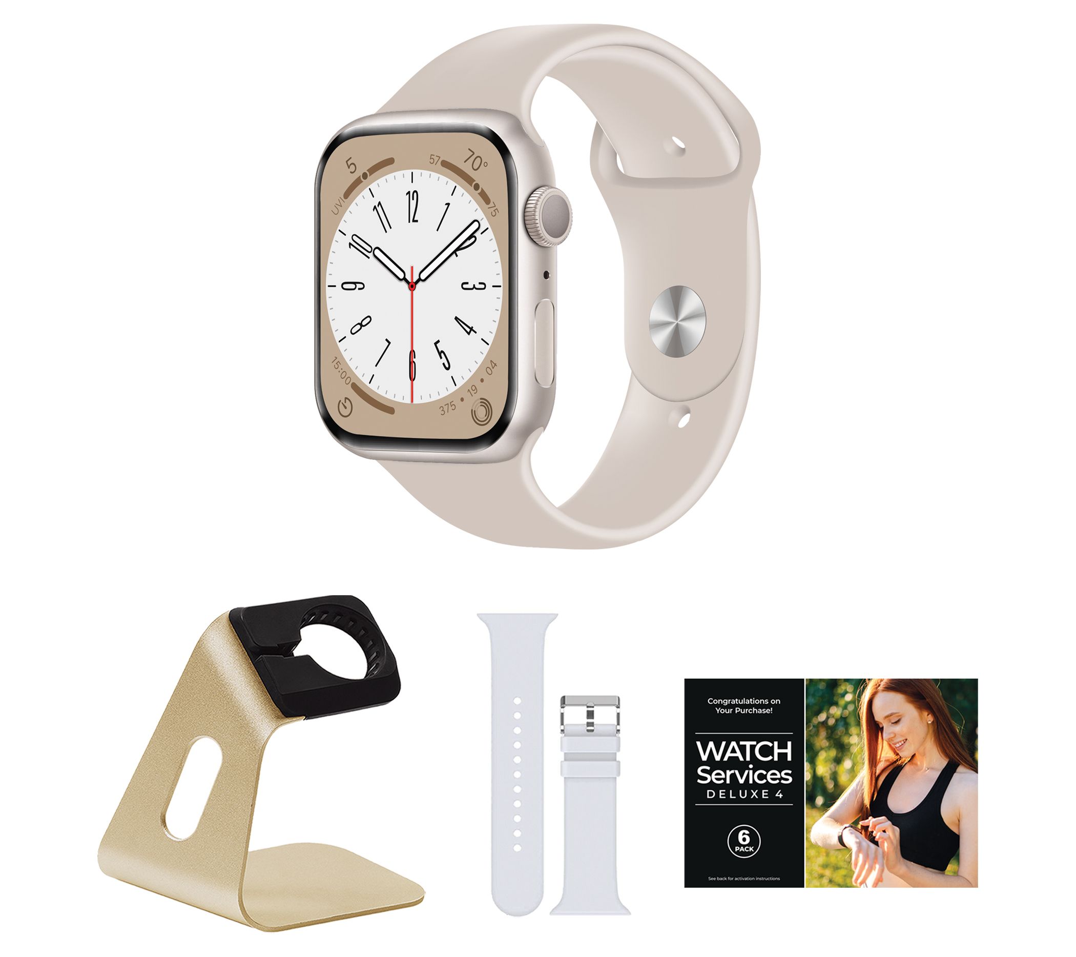 Includes 2nd-generation Apple Watch SE 40mm with medium/large band and magnetic charging cable; charging stand, additional band, and voucher